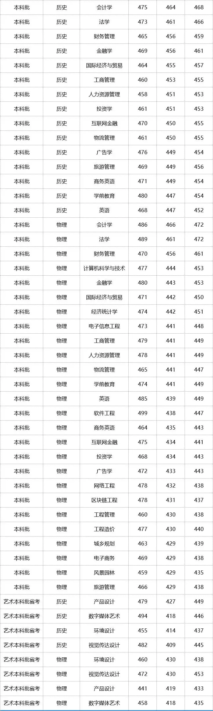 福州工商学院2025年福建省各专业录取分: