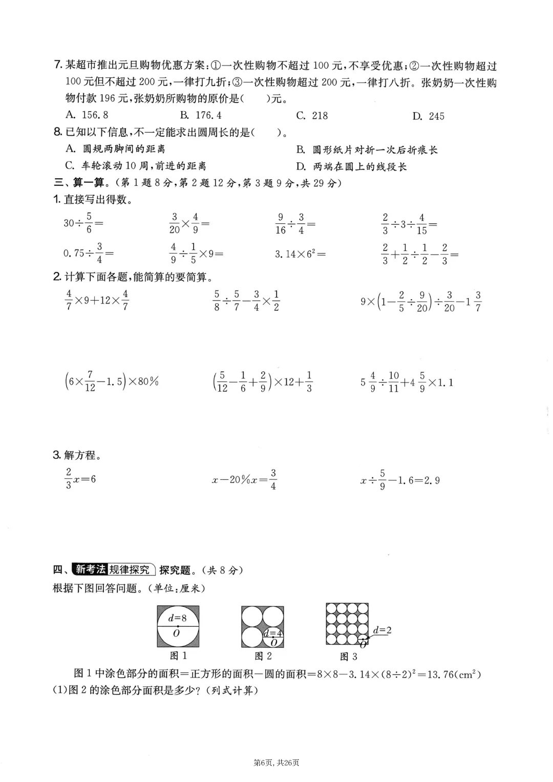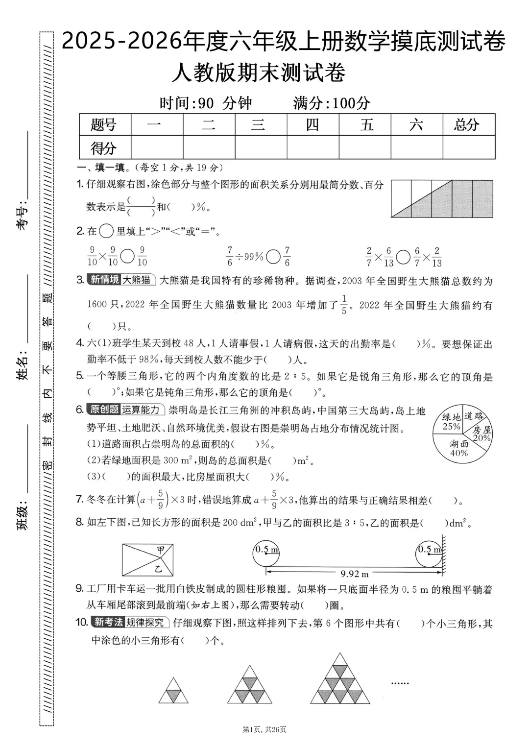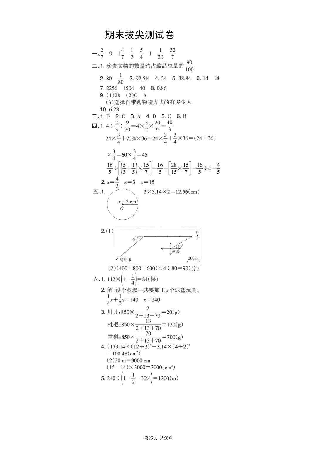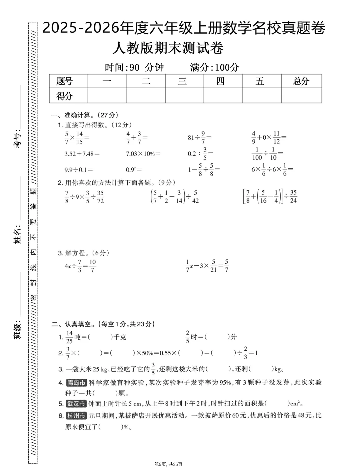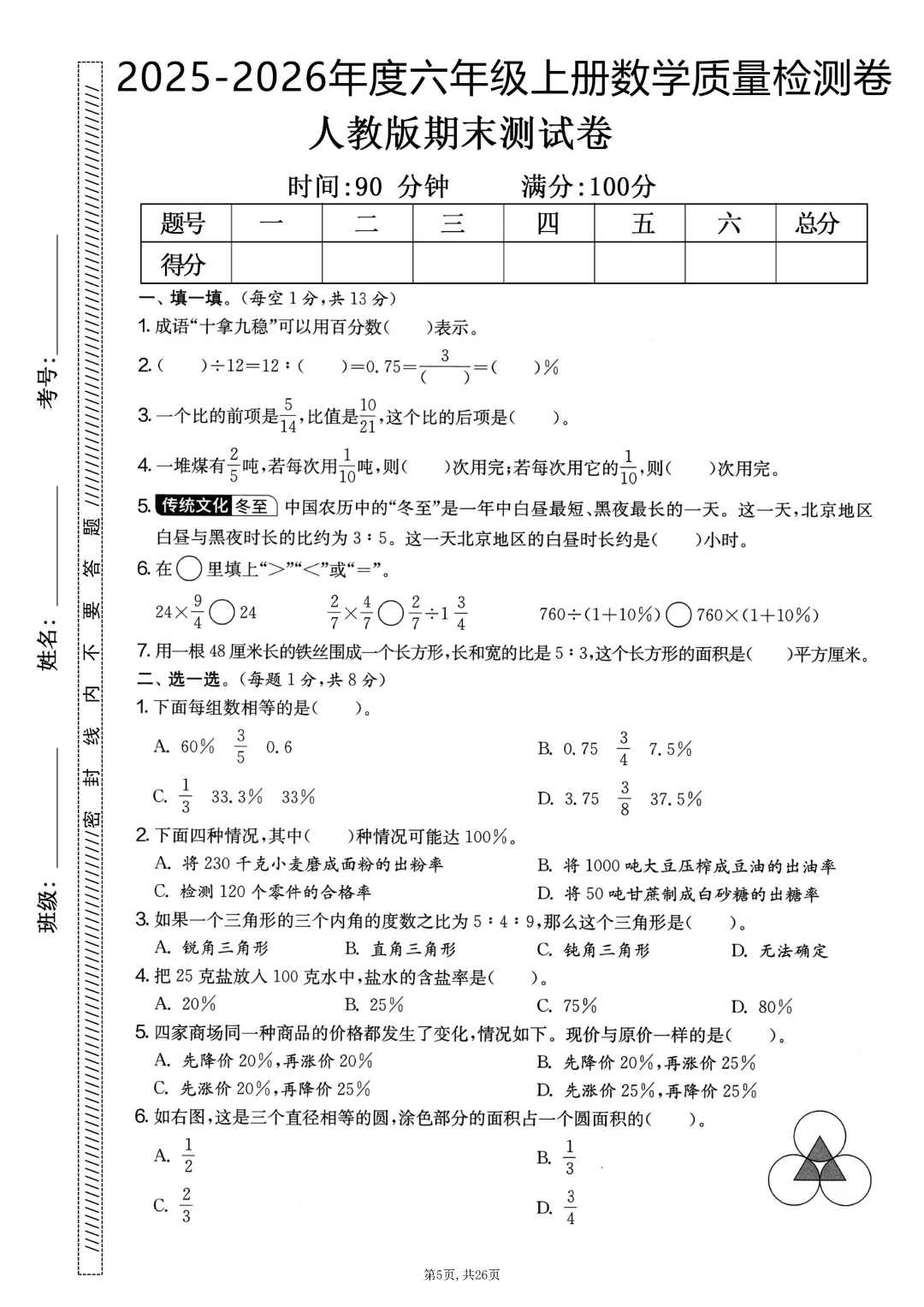 2025秋六年级上册数学《期末考试卷》人教版