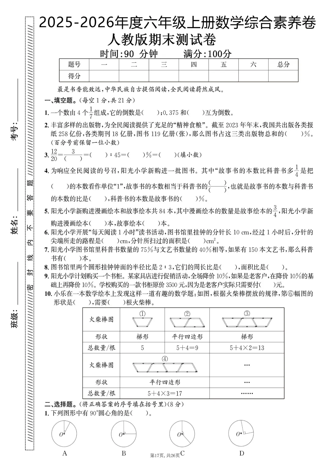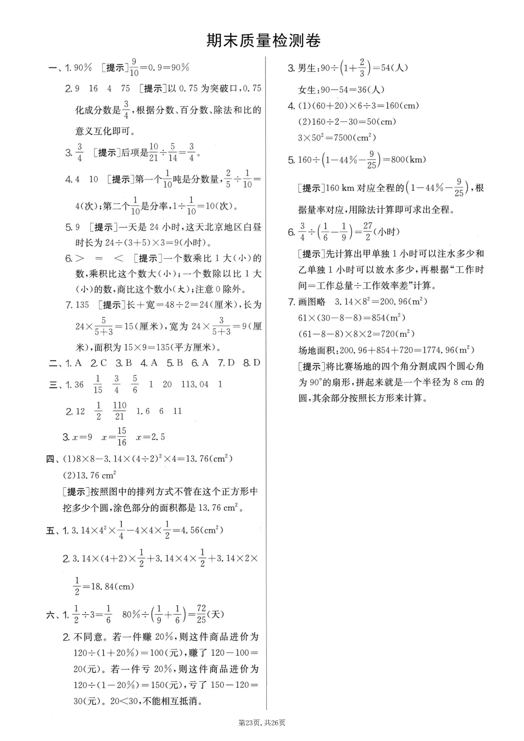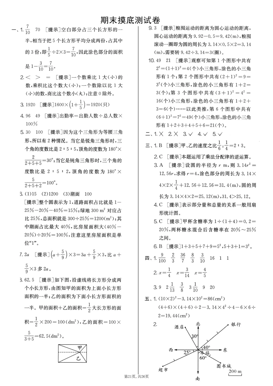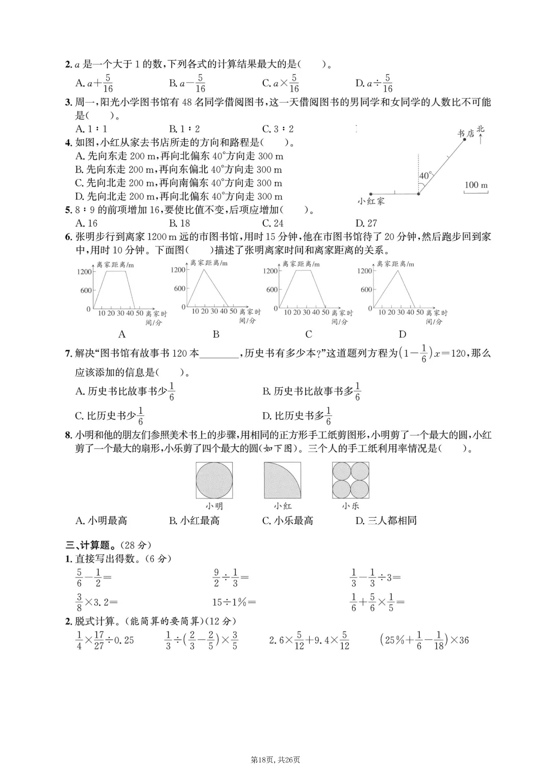2025秋六年级上册数学《期末考试卷》人教版