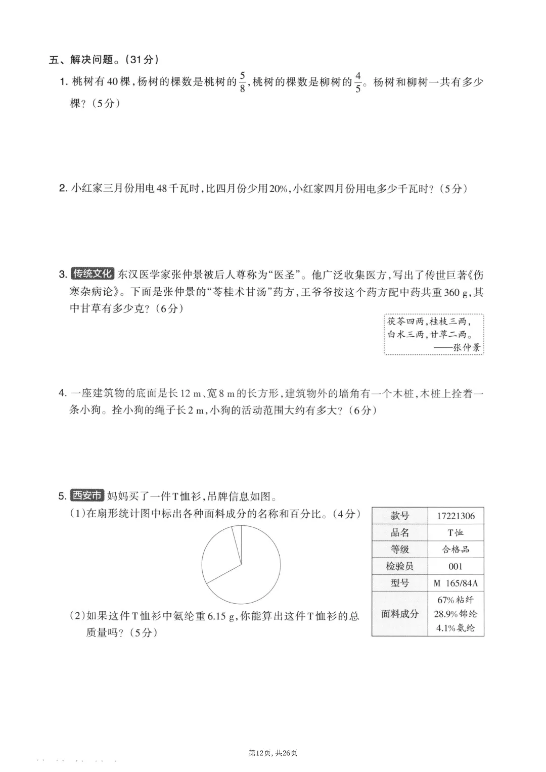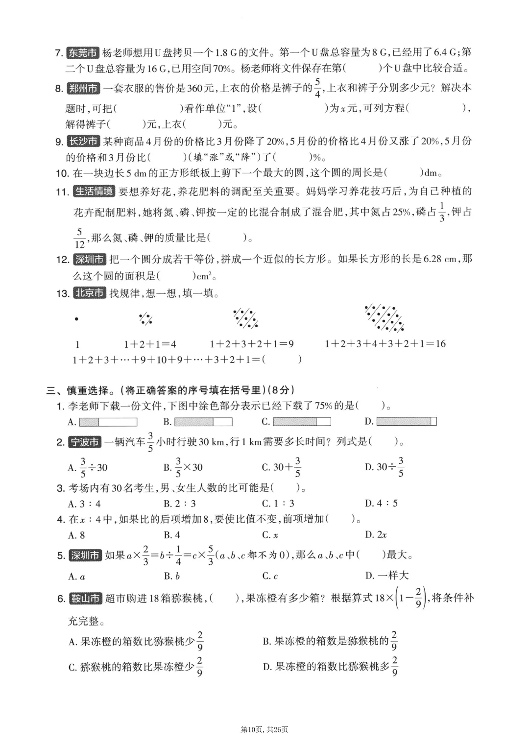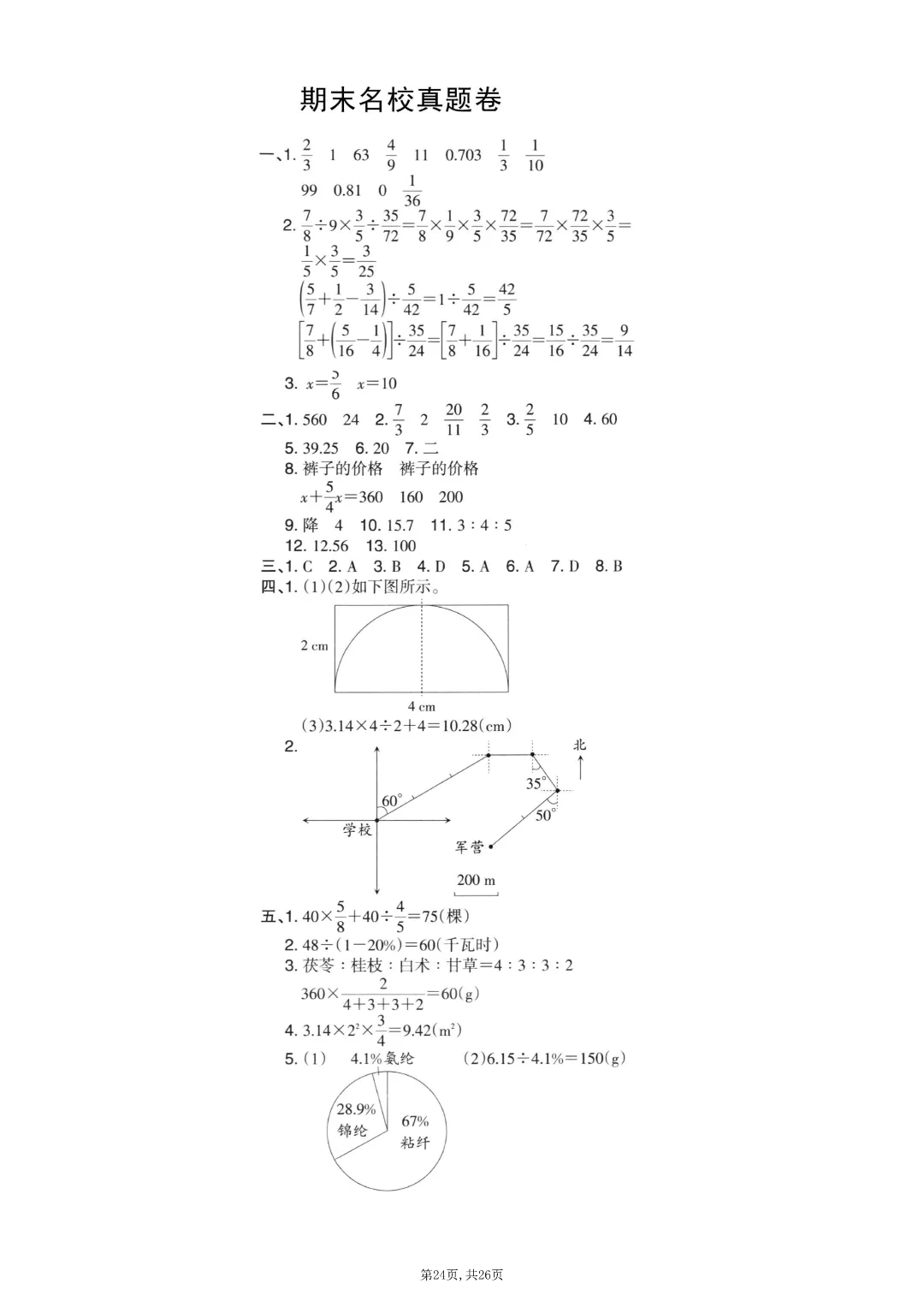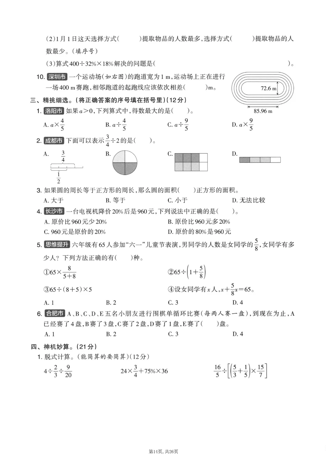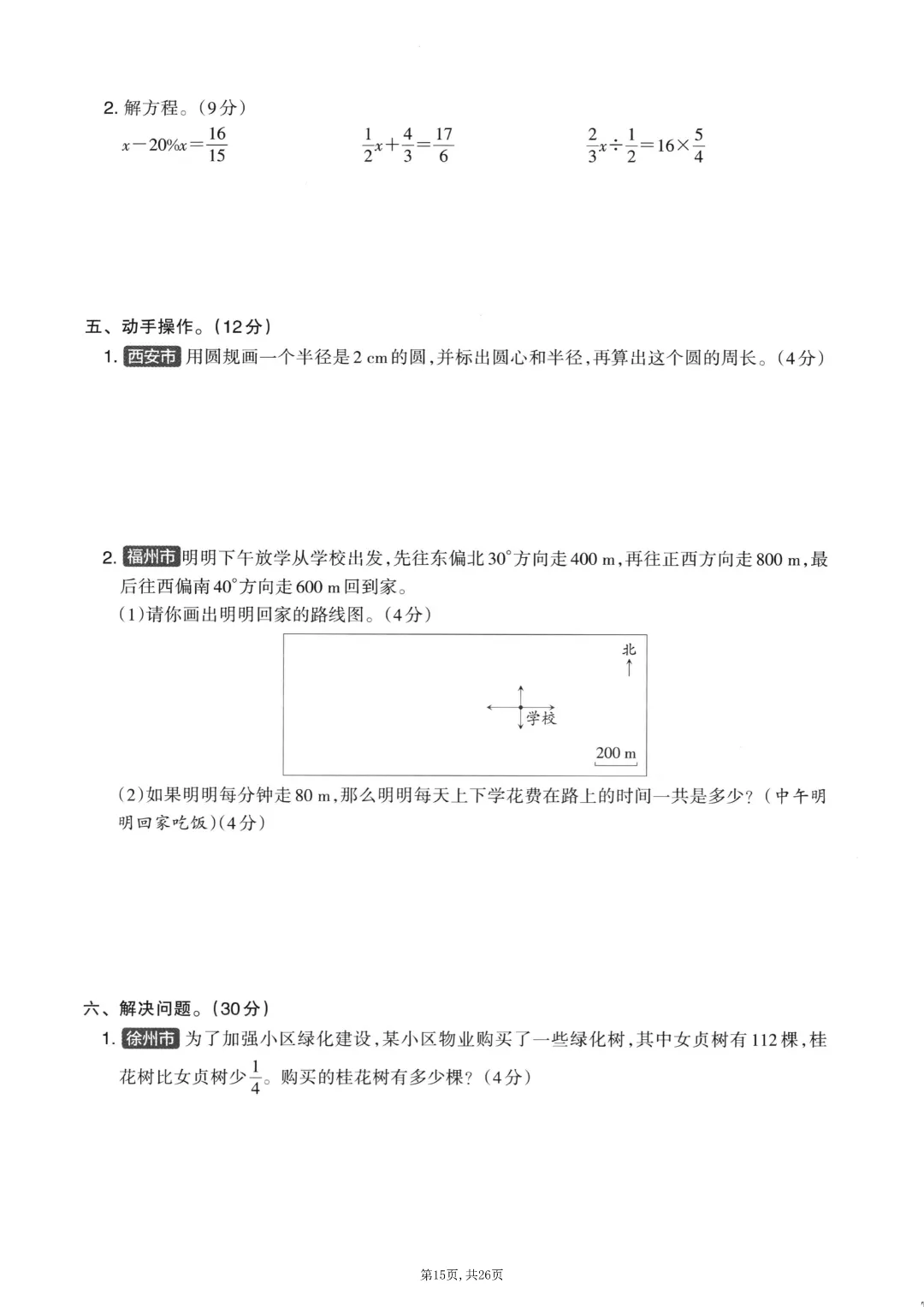 2025秋六年级上册数学《期末考试卷》人教版