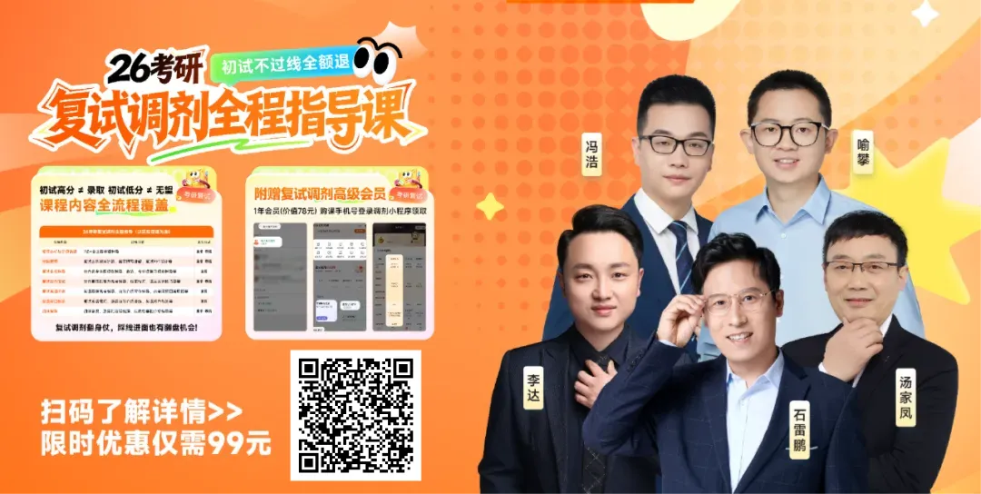 虽然会出现考后焦虑的情况,但同学们的复试进程坚决不能被这种情绪影响,对于复试的准备比较迷茫的同学,橙酱为大家准备了详细的复试指导课程和资料~