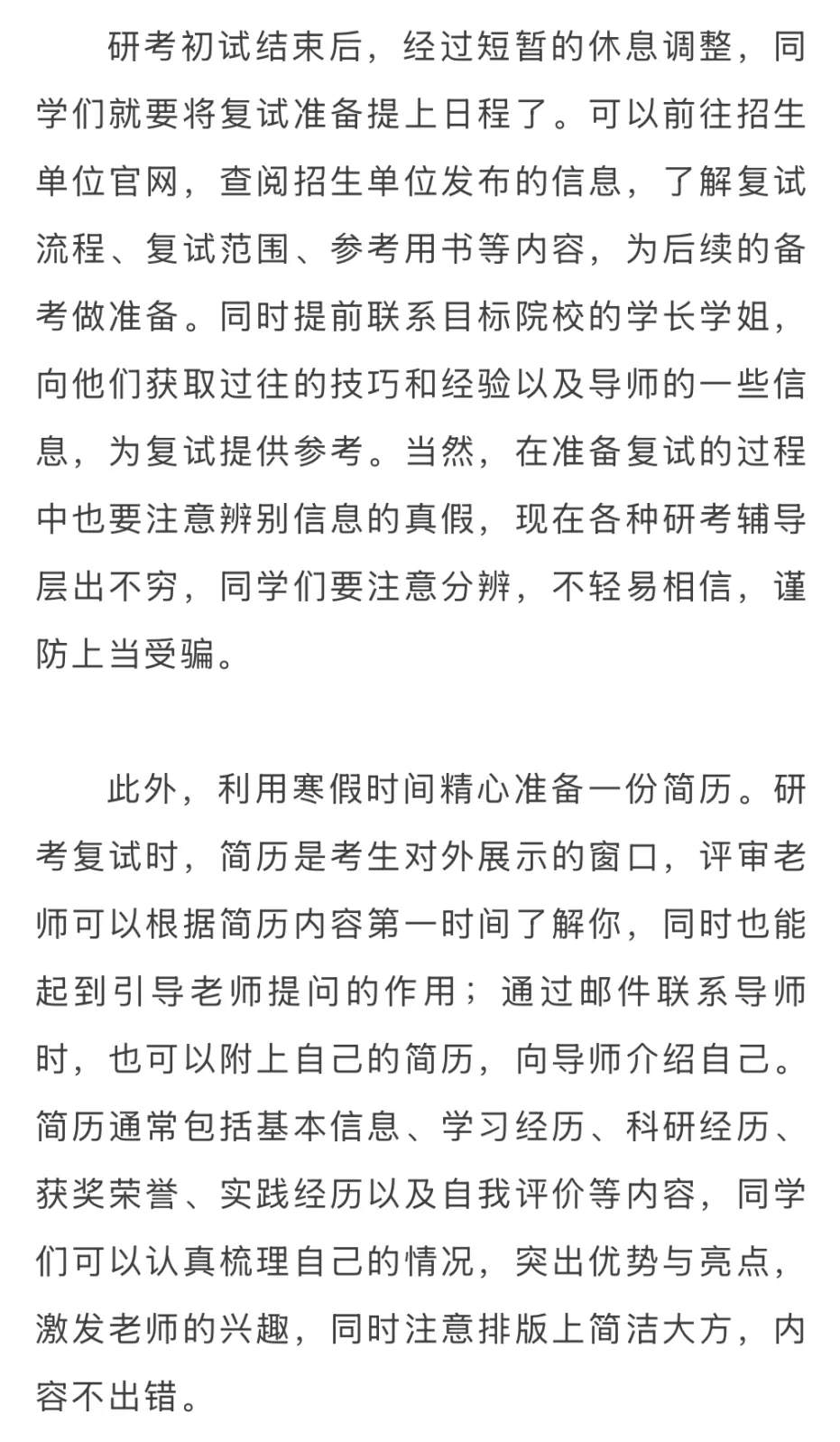 【提醒】我校不提供往年考研真题及任何考研辅导材料,也从未授权任何培训机构或个人出版、出售考研辅导材料和试题。距离复试仍有充足的准备时间,在不熟知复试方向前,考生们可以先从面试准备、英语口语等方面入手。同时关注官方复试通知了解相关信息。