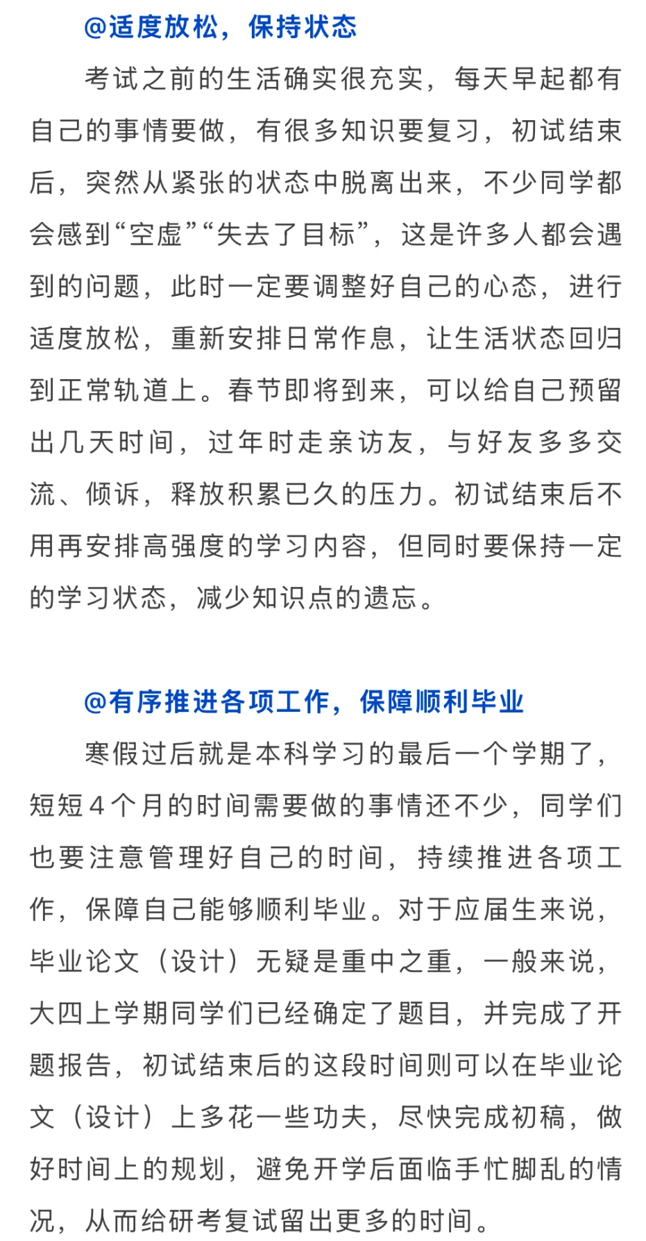 调整心态,为顺利毕业做准备