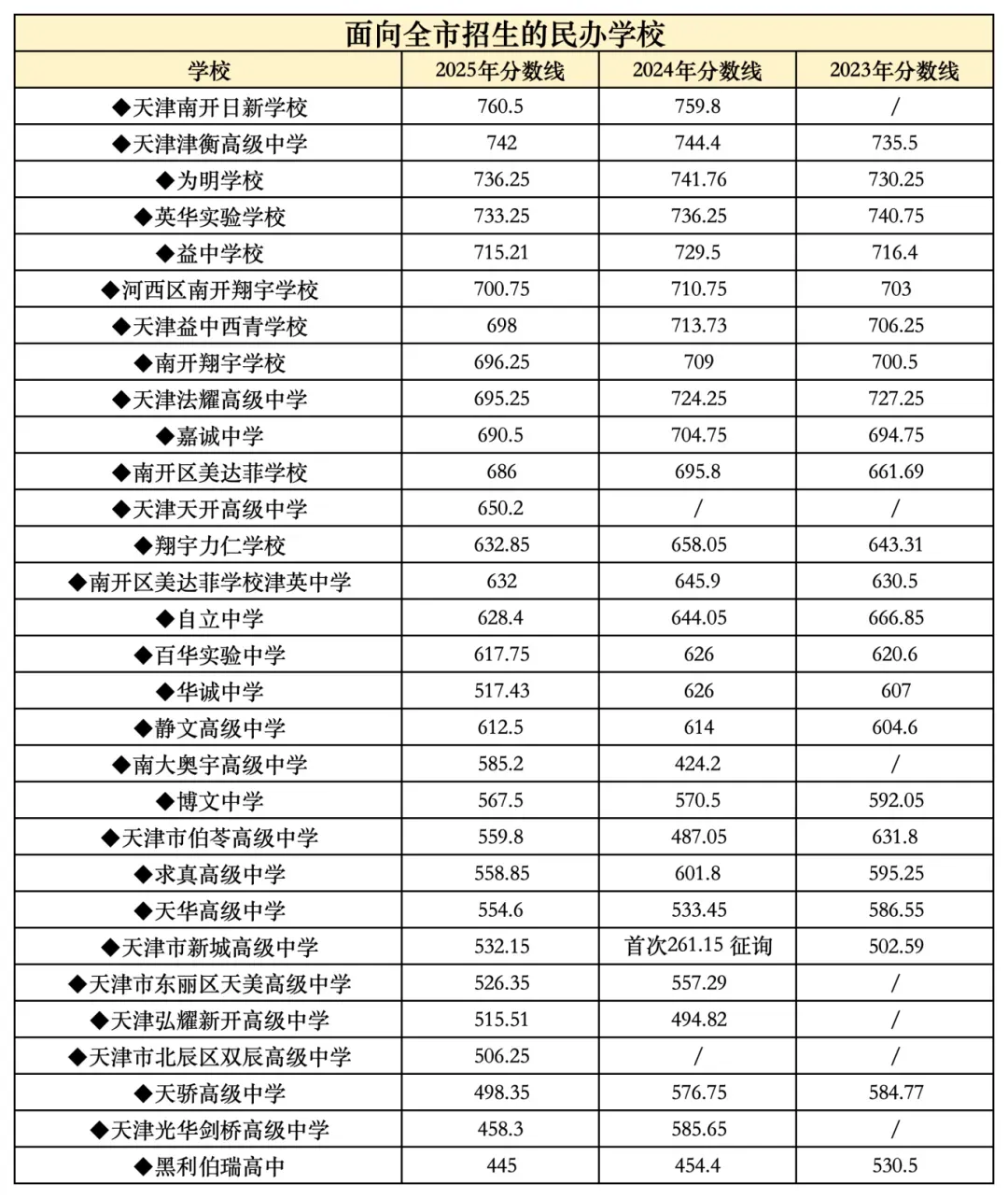 >2025年天津市各高中录取分数线汇总!附近三年分数线对比!