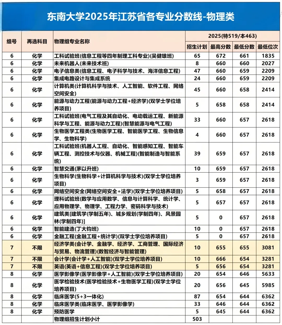 免费订阅江苏升学信息江苏考帮按:刚刚,东南大学官方公布了2025年各专业录取分数线,江苏考帮整理了详细情况,一起来看: