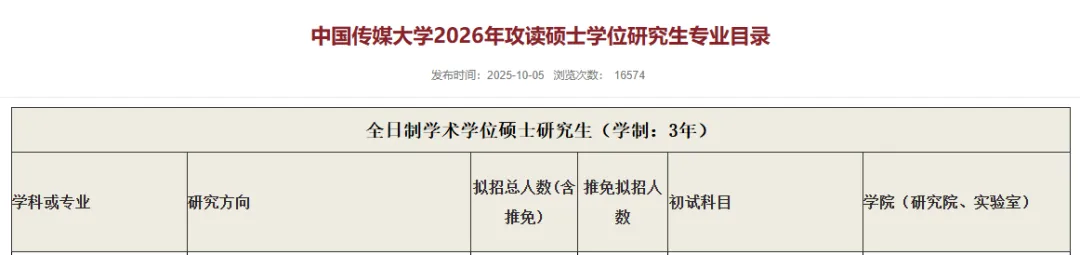 中传研招网:https://yz.cuc.edu.cn。中国传媒大学研究生招生信息均在此发布,请考生及时关注。