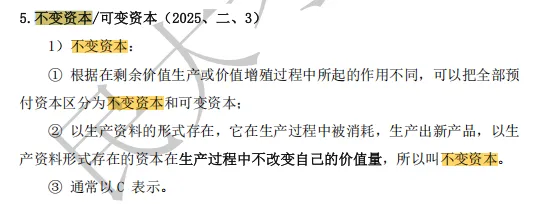 名词解释:2.不变资本