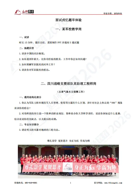 万老师:从军26载,担任过连长、参谋、营长、科长、部长,2017年退役。在部队荣获三等功四次、优等军官、先进个人等多项荣誉,2019年投身服务军队文职招考,继续为国防事业尽绵薄之力。177-8006-1956(微信同号)