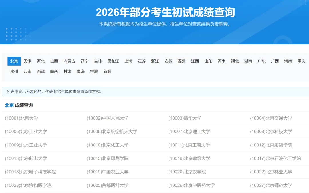考研初试结束以后,等成绩的这段时间是比较“煎熬”的,脑海里总会时不时地想起考场上的一些画面,担心自己的某一科成绩没有过线,担心会犯一些小错误。经历过考研的都应该懂得这种感受,对抗这种“焦虑”的方式就是提前做一些复试的准备工作,这样心里感觉更有底气!最近,研究生招生信息网的成绩查询页面已经更新了,见下图。虽然列表是灰色的,但是代表着研招网查分网站已经做好了“查分”前的准备工作,一旦初试成绩开始公布之后,所有学校的列表都会变成亮色和超链接。按照目前发布的消息,大概率2月24日以后可以查询初试成绩,满打满算还有40天的时间,除去中间过年的时间,能投入到考研复试准备工作的时间也不多了。建议大家还是做个时间计划,把需要巩固的专业课和相关复试的准备工作提前安排好。争取能在初试成绩出来之前,完成一轮专业课复习,时间充裕的,可以多复习几遍。同时把该做的其他准备工作(个人简历、导师信息搜集、中英文自我介绍等)都完成。这段时间,各个院校的调剂信息也不会正式公布,不过可以先参考往年的调剂录取数据。在这里推荐一个调剂信息查询的工具,可以在很短的时间内找到往年的调剂录取数据,在这个基础上,再筛选意向调剂院校清单就能省去很多重复的工作。需要的可以扫码注册,提前了解往年热门调剂院校录取情况。