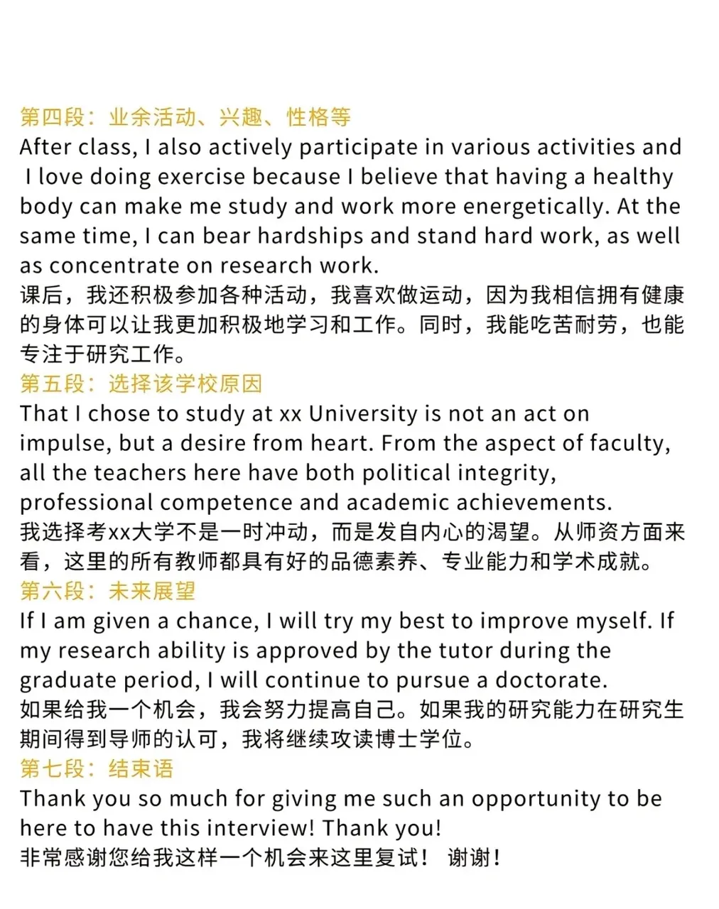 • 中文自我介绍:部分院校会要求额外进行中文自我介绍,建议提前备好中英双版本。中文介绍可更细致地阐述学术背景、专业兴趣与未来深造规划,让导师全面了解你的适配度