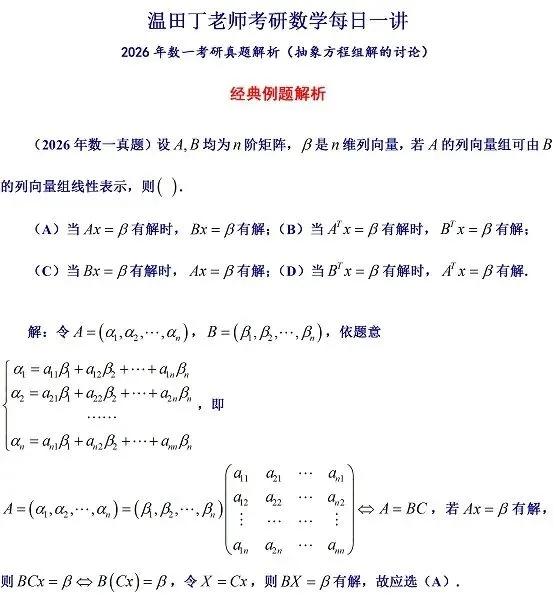 >2026年数一考研真题解析(抽象方程组解的讨论)