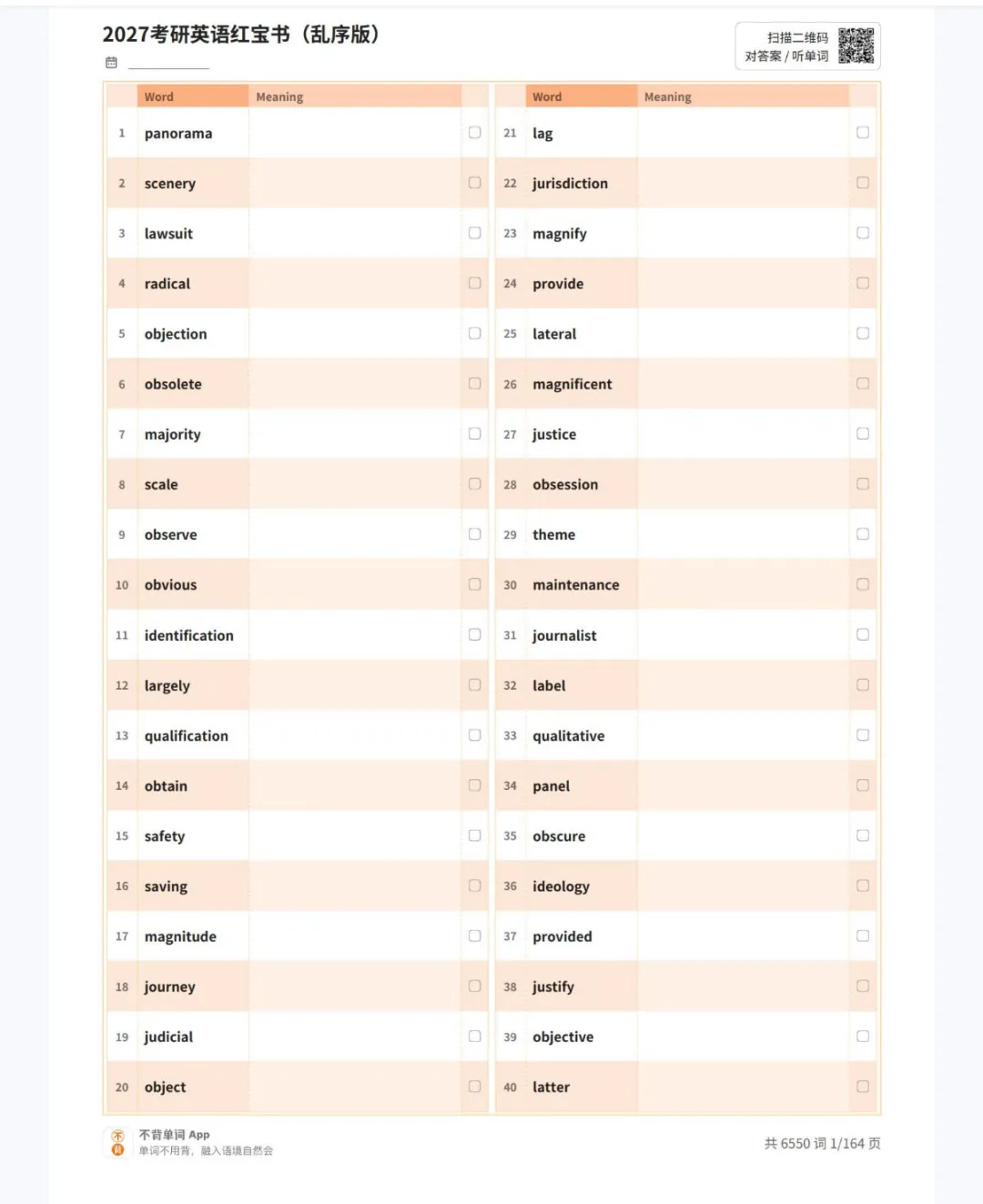 通过百度网盘分享的文件:26考研红宝书➕27考研红宝书单词表 链接:https://pan.baidu.com/s/1BPCZ5c2ea04ALEaK_xjwdw?pwd=m613 复制这段内容打开「百度网盘APP 即可获取」