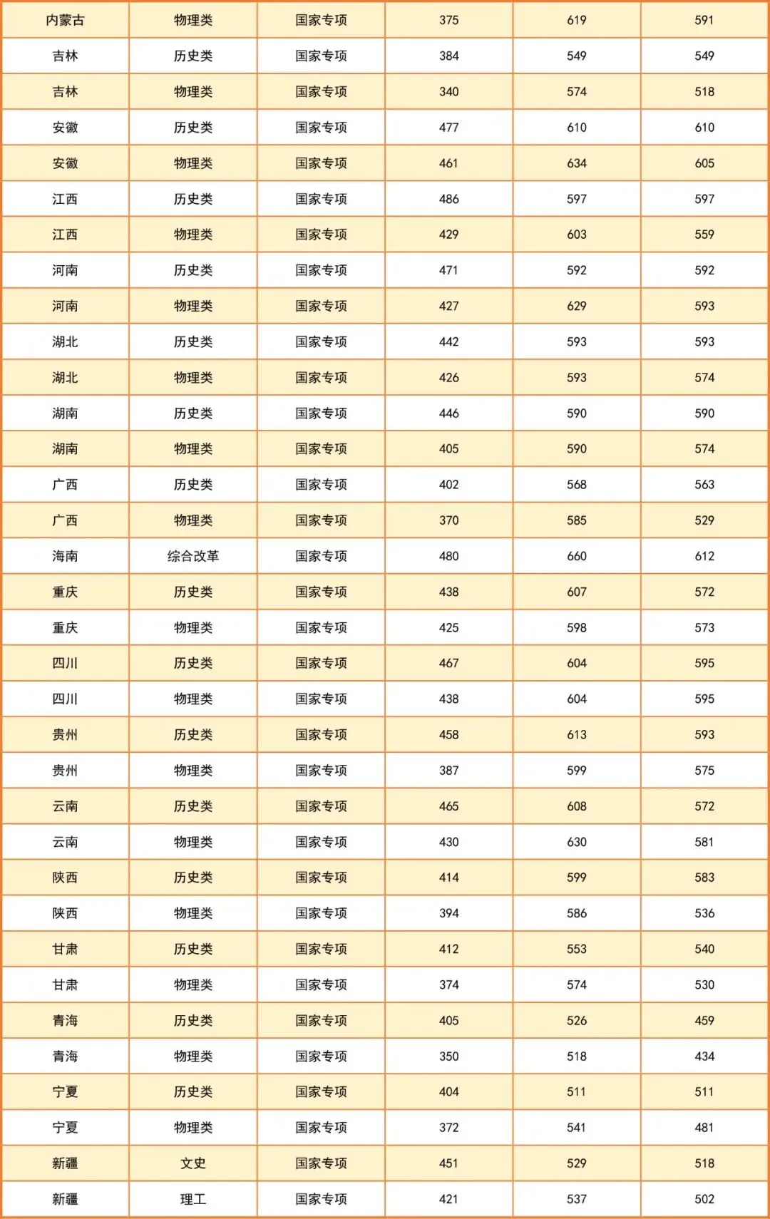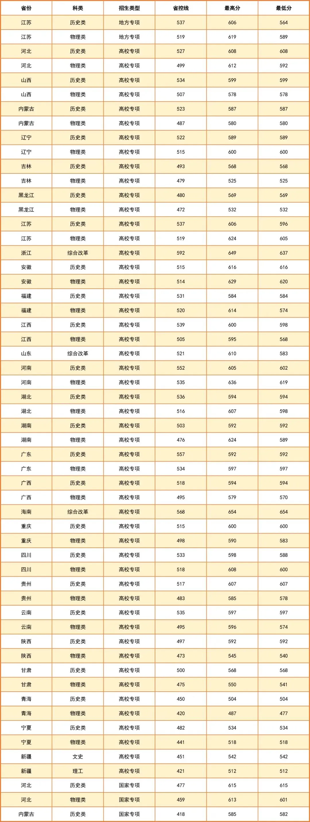 2025年专项计划分数线