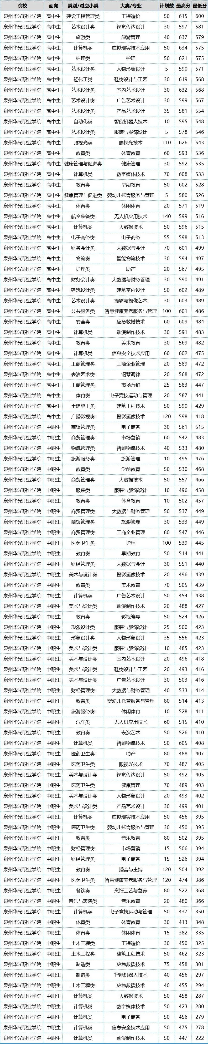 2025年招生分数线按最低分(分数线)高低顺序排列如下:2025年高职分类录取分