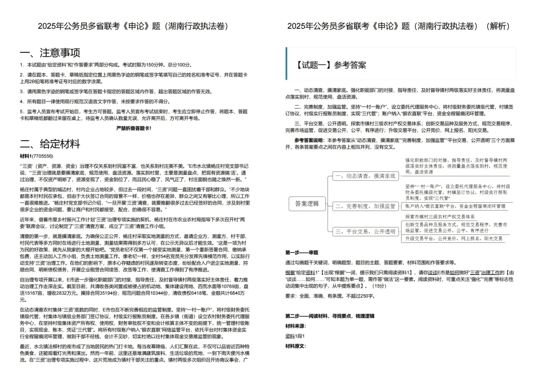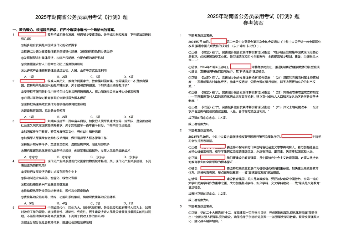 >2025湖南省考《行测》《申论》考试真题及参考答案