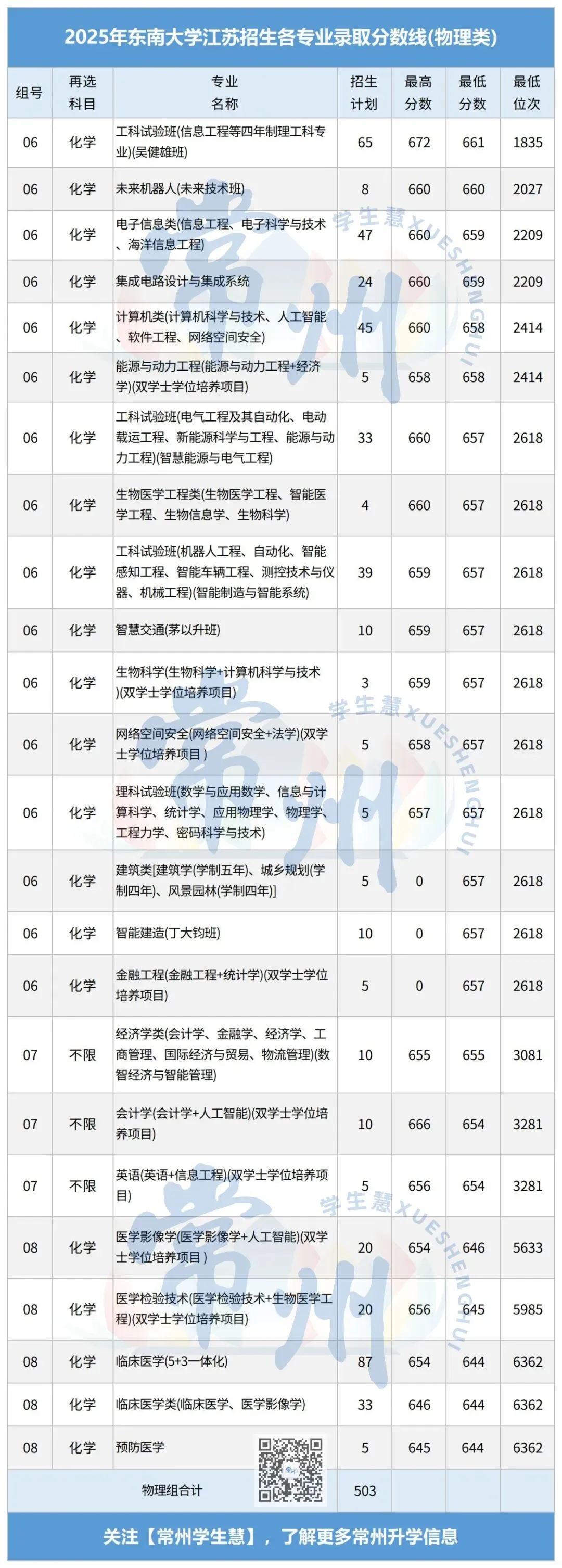 此外,06专业组以及08专业组均要求再选“化学”,也就是说,想报考东大的热门工科、理科、医学类专业,都要求“物化绑定”,即将选科的新高一学生和家长需要注意!