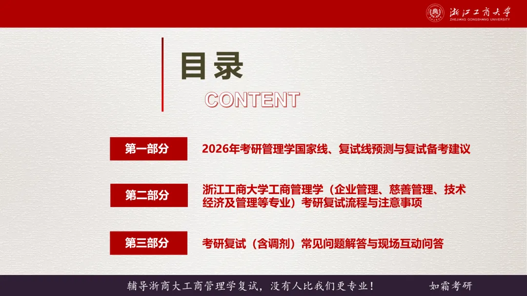 我将会“面对面”给大家解答在考研复试中遇到的一些问题(包括复试注意事项和技巧),也会给大家详细讲解浙江工商大学(工商管理学硕)考研复试的一整套流程和复习策略。