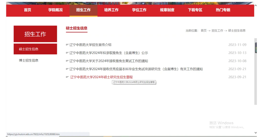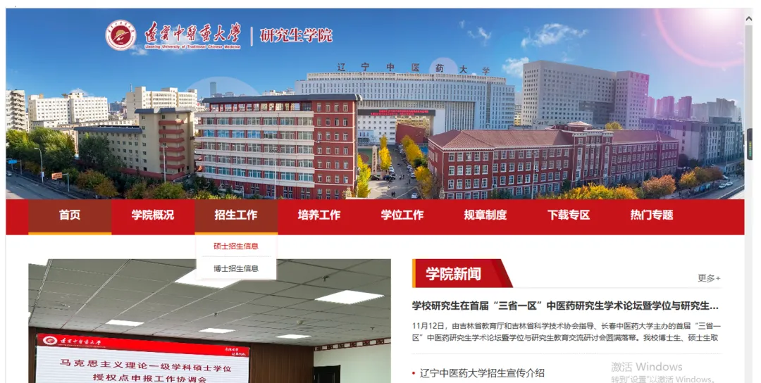以“辽宁中医药大学”为例,搜索“XX院校研究生院”