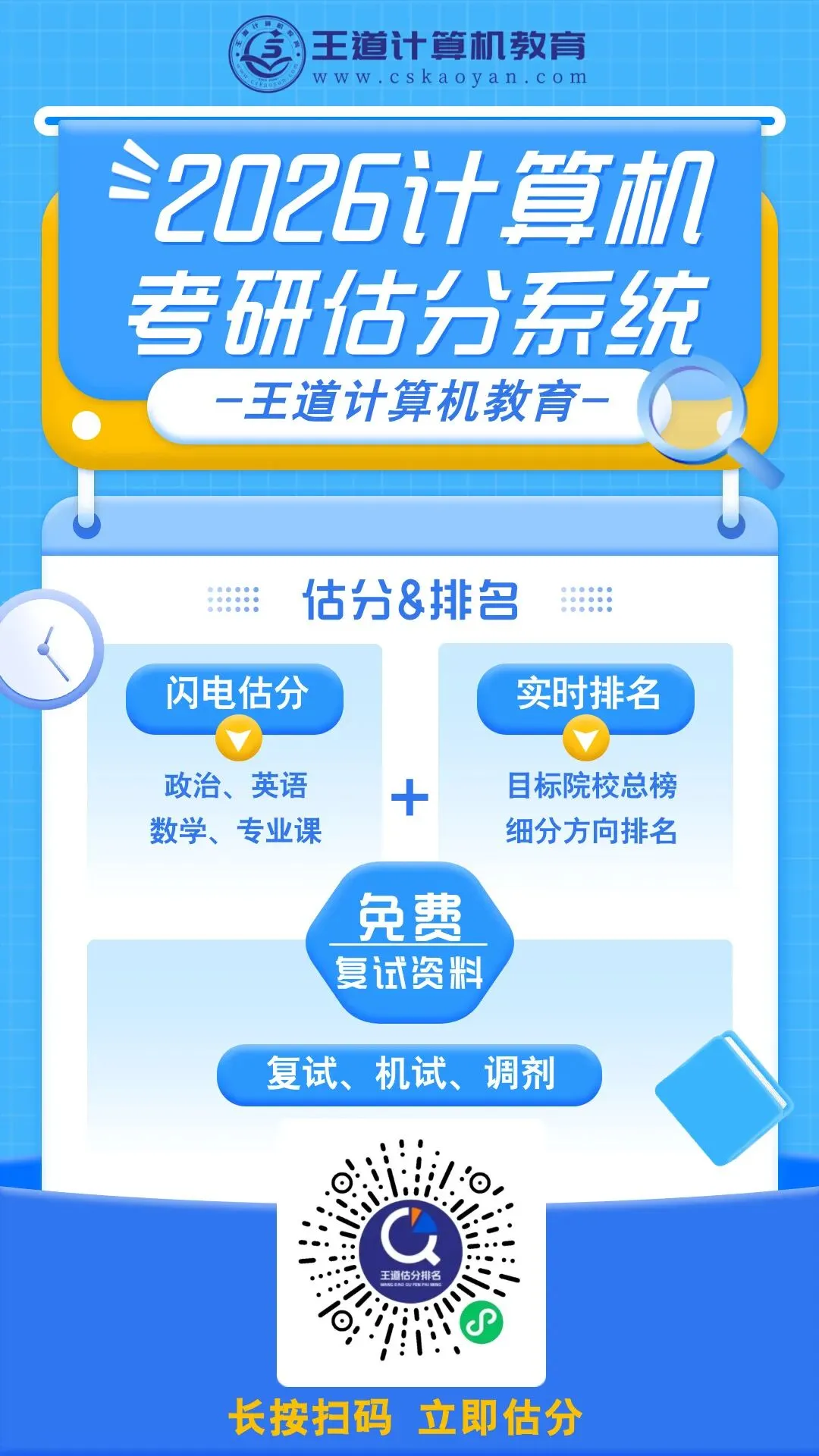 26考研是不是最好上岸的一年,不太好说。毕竟考研是按招生计划选拔的,所以还是要看到时候出成绩后的分数线怎么划。王道今年给大家准备了一个免费的估分小程序,还能看到目标院校的排名,方便大家来预估自己的上岸概率。