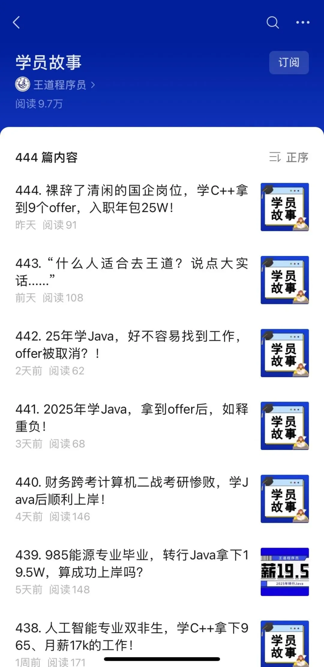 如果关注后找不到王道训练营的学员故事,可以直接扫码,点击右上方【订阅】,该专栏会持续更新。