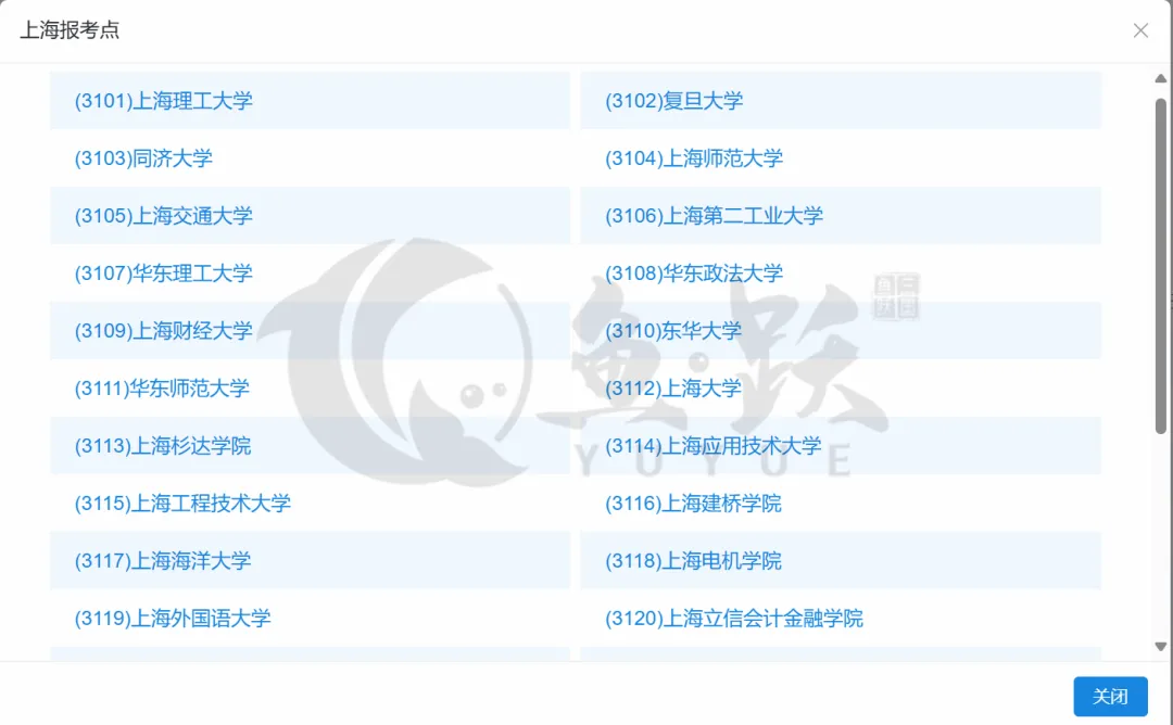 示例:若在上海考试,选择“上海市”而非“北京大学”。