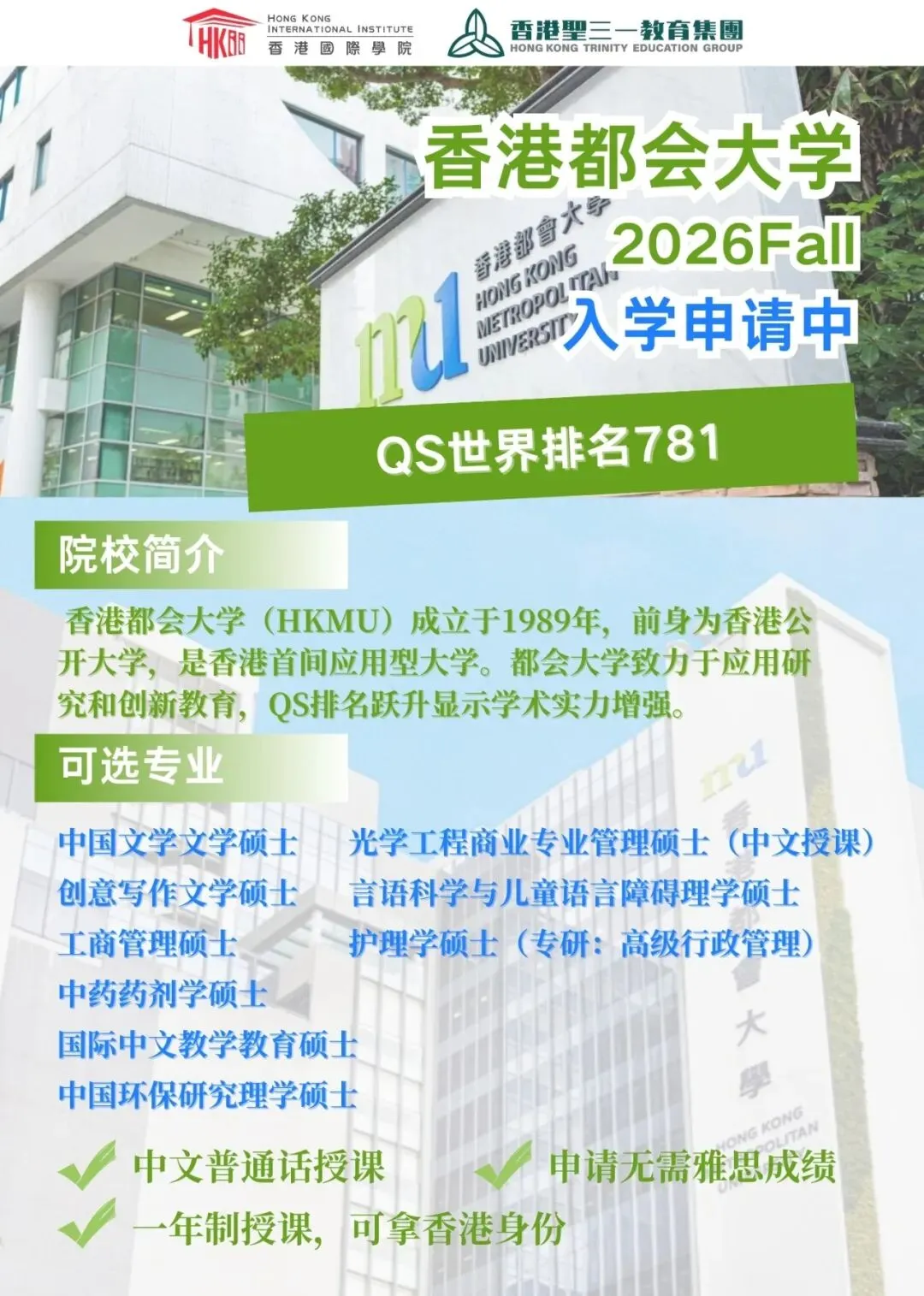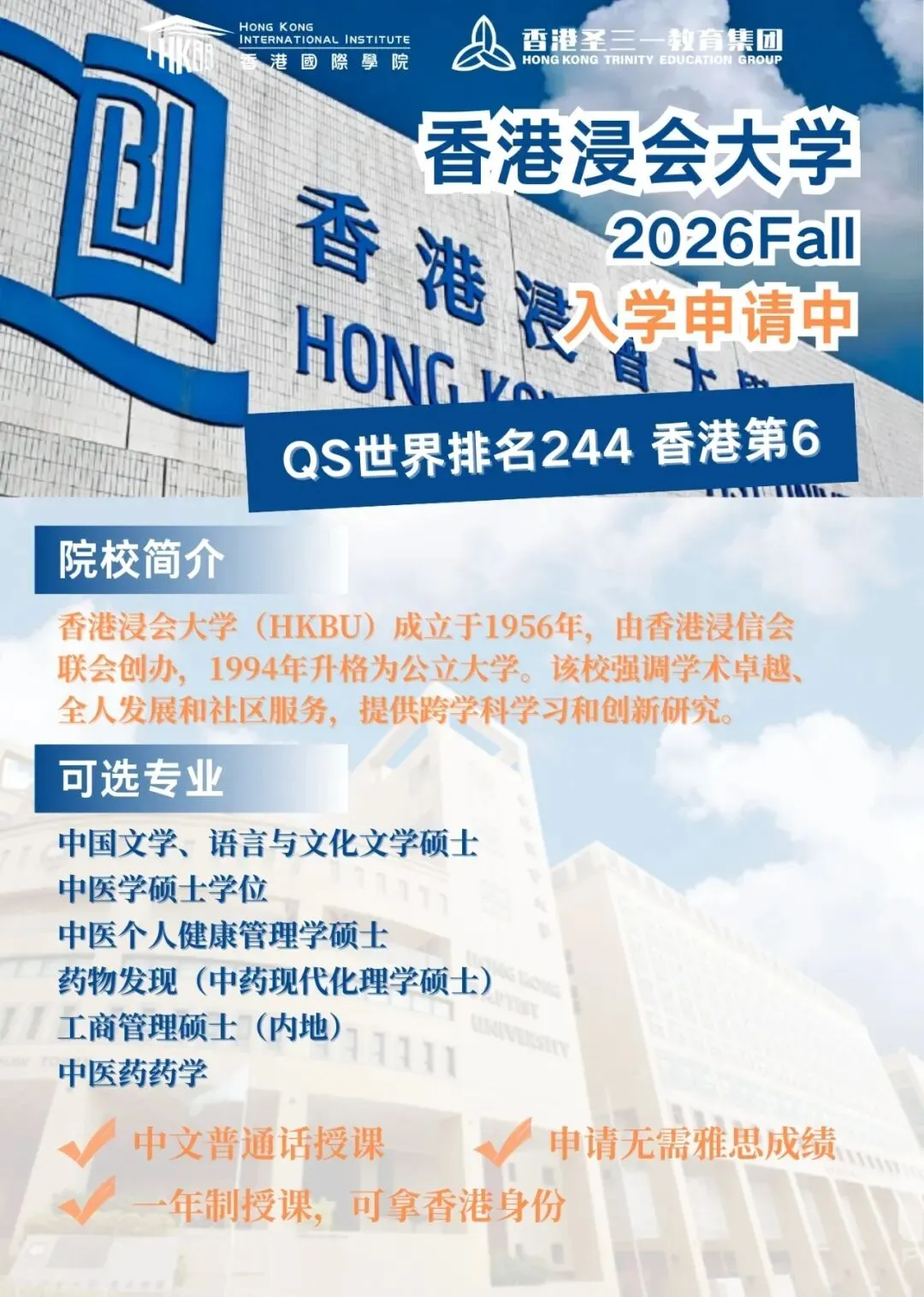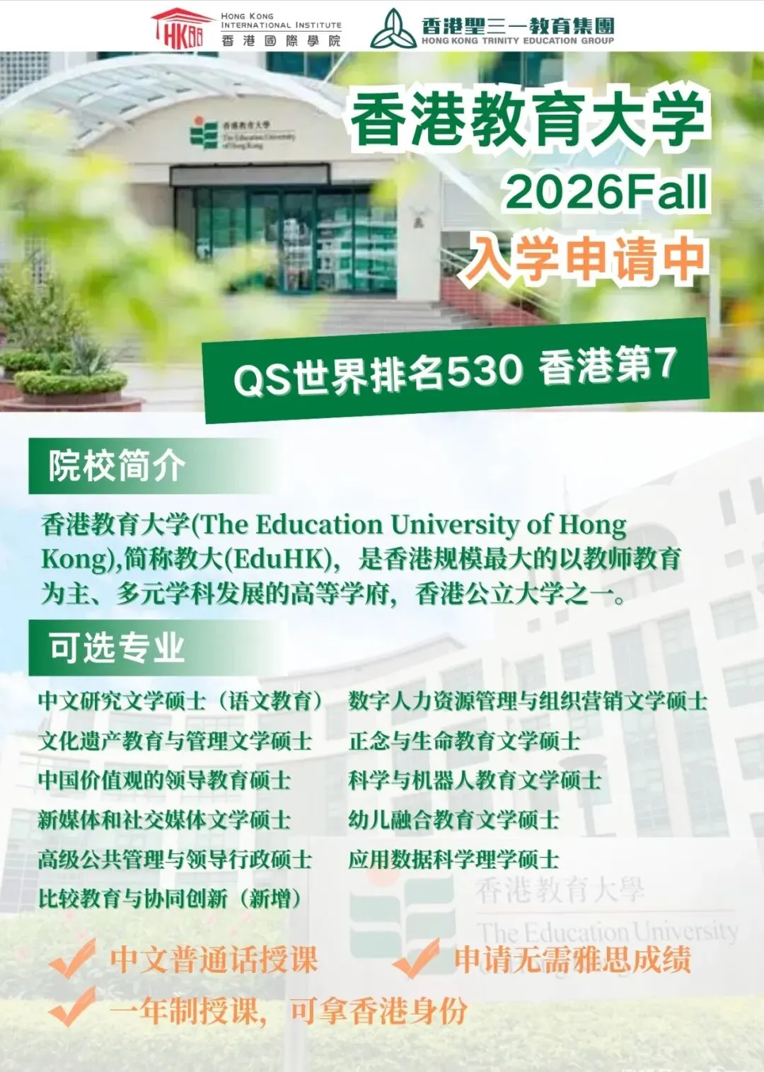 🔹无需备考: 香港硕士为申请制,只需以大学四年的学业及课外活动为基础,提交相关材料即可申请,不用重复准备统一考试!🔹院校背景硬核: 有多所常年稳居QS排名世界top100的名牌大学,不仅直接对标清北复交,而且在全球范围内都有极高的声誉。以下是香港及内地高校的2026年QS世界排名对比:🔹录取机会翻倍: 有更灵活的升学政策,香港不像考研一样只能选择单一大学及专业,也无需纠结尴尬的调剂结果;申请香港硕士不限大学数量、专业数量,多报几个就有多次录取机会,直接提高成功率;🔹一年快速毕业: 有更短的学习周期,大部分香港硕士为一年授课制,只需要完成一年的学习即可毕业,且享有多次校招机会,更快速、高效进入职场;🔹语言选择多样: 英语不好,考研英语分数太低?香港硕士有多元的语言环境,除了传统的英语授课专业,众多名校争相开设中文授课专业。因此无四级/六级,无托福/雅思也不怕!优质院校及专业同样等你入读:🔹拿香港身份: 只要入读香港硕士就直接拿到香港身份证,毕业后无条件获得香港工作签证,这一待遇与香港很多高端的人才入境计划相同(入境计划需要年薪250万,或投资3000万等),性价比极高;🔹就业出路多样: 香港硕士毕业后既可以选择回内地考公/考编/就业,同时享有诸多留学生红利政策;也可以选择留港工作(薪资中位数22500港币)拥有多重发展机会。可能有同学疑虑:香港9月就开学了,现在已经是1月中旬,我才开始准备申请香港硕士是不是太晚了?港校非常积极接收刚刚结束考研的同学,甚至头部名校也留出名额给考研同学;目前还有多所港校处于第一轮、第二轮申请的黄金期,时间宽松,成功率高。了解更多香港八大26fall硕士申请及香港三大捡漏机会,欢迎阅读↓特别是考研后需要兼顾复试、毕业论文等事项的同学,您都可以放心将香港硕士申请交给我们!以下是我们帮助同学取得的部分录取成果:立即扫码咨询