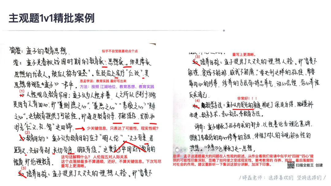 回答:都会涉及,只是介入的方式不同。在「系统学习方案」中是“伴随出现”的,比如讲知识点、讲题时顺带出现。老师讲一题,顺带告诉你“这里为什么这样问”。「深度学习方案」,是“强迫式”的训练,就是你必须要动笔写。老师会指定题目,你先写→老师精批(精批案例可以看视频)→你可能再被追问(比如,某一句话、某一段你是依据什么判断写出来的?)这是一个被反复拆解、反复训练的过程。