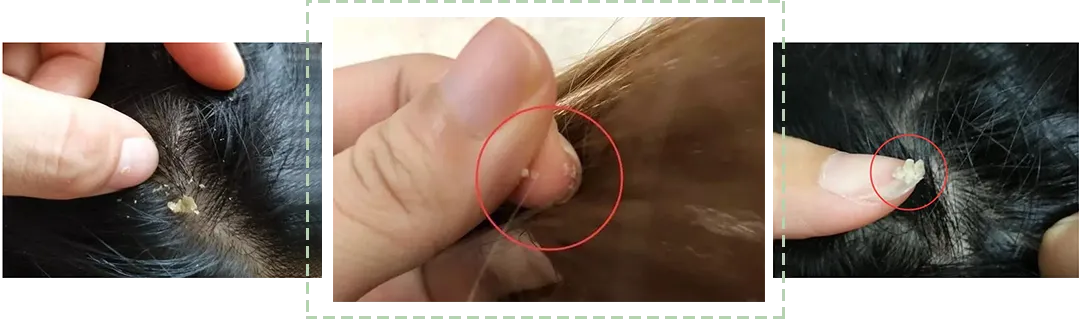 再看看个人使用后的效果,把堆积在毛囊上油脂、头皮屑全都“搓”出来。