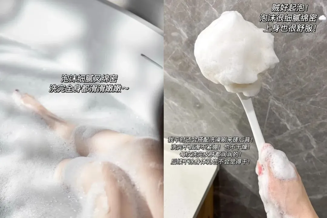 像我平时就很喜欢搭配洗澡刷,后背也能清洗到位,变得白净嫩滑!