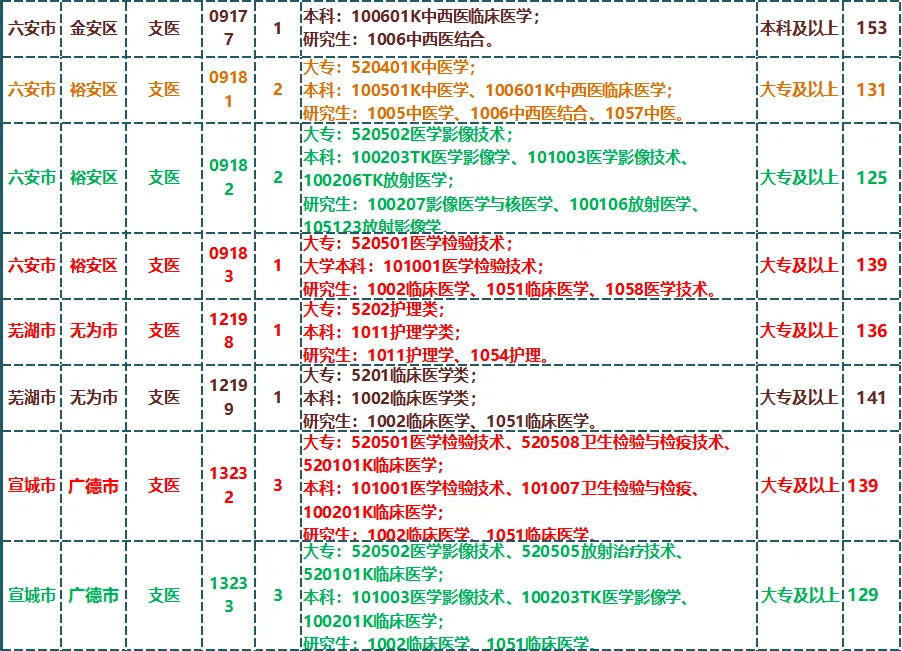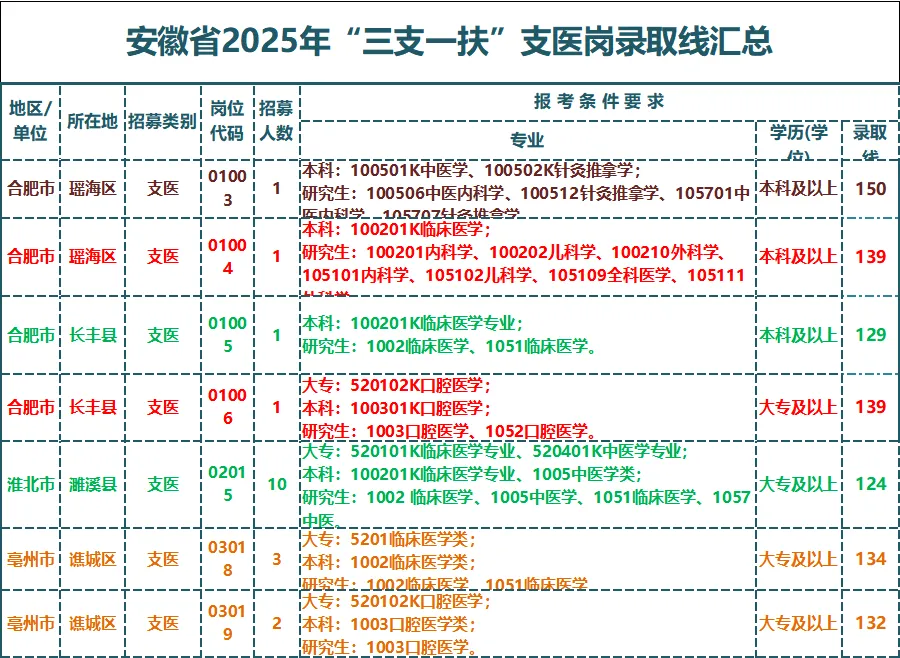 >2025年安徽三支一扶全省支医岗录取线汇总