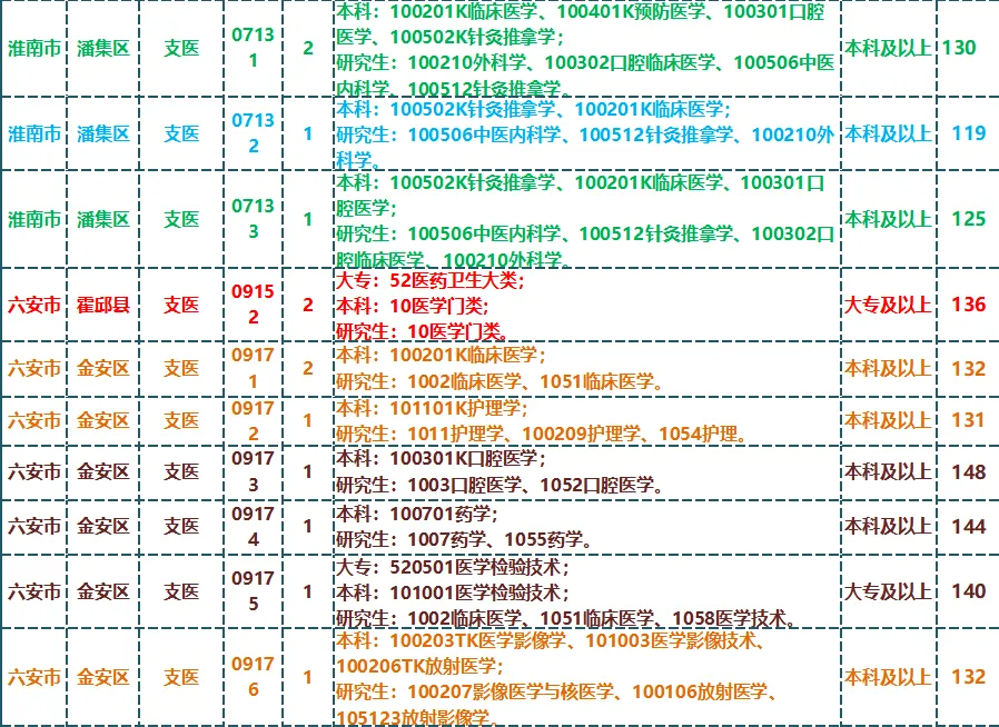 2025年安徽三支一扶招录支医岗共计168人,2024年招录208人,全省缩招40人,岗位数下降19%。岗位人数的下降和报考人数的增多也导致2025年分数有较大提高。不过总体而言,支医的录取分是明显低于支教和扶贫的。