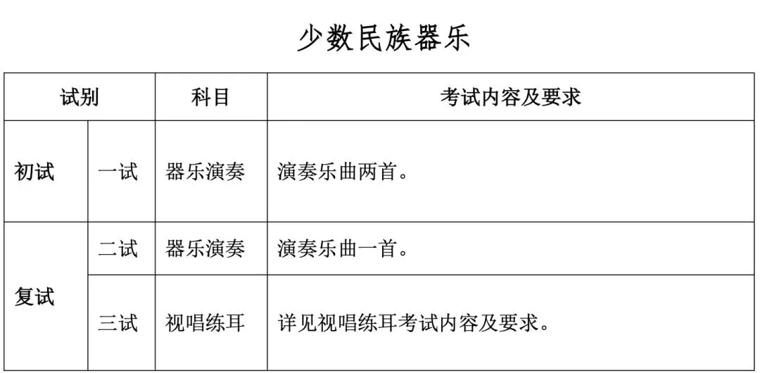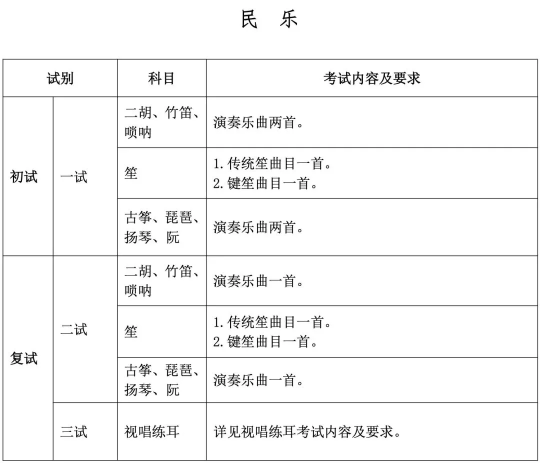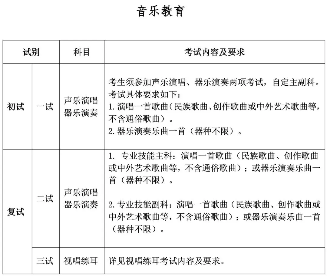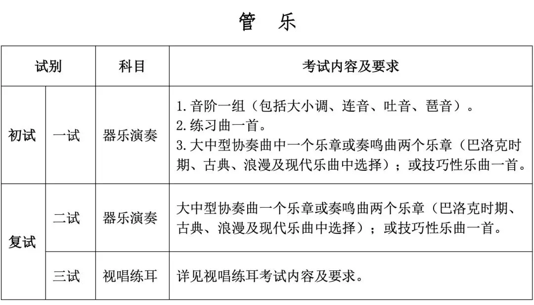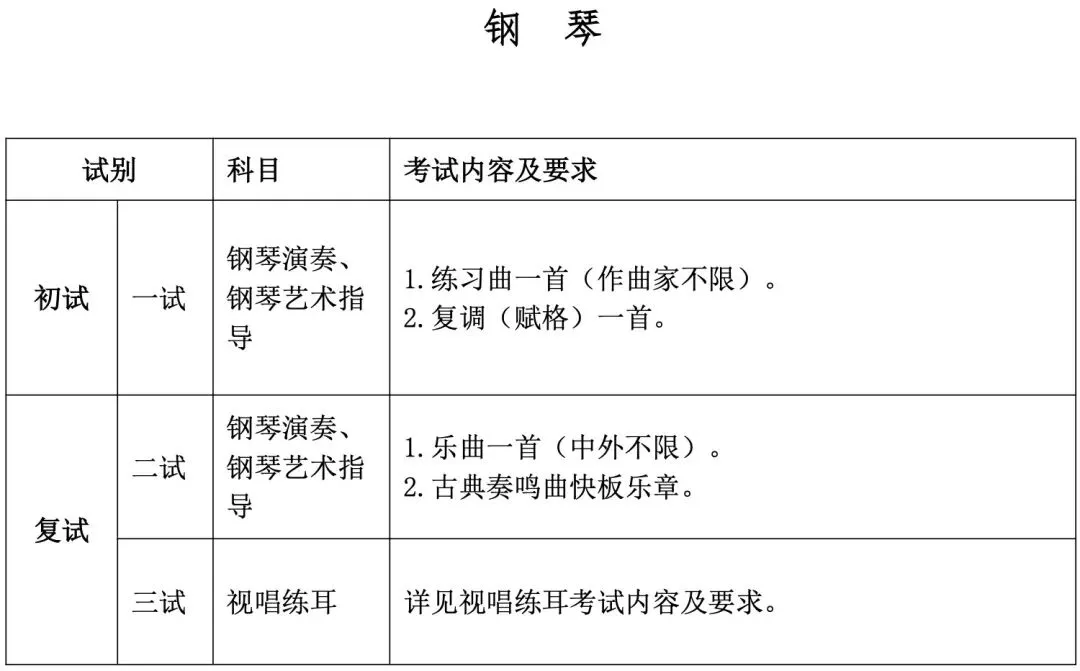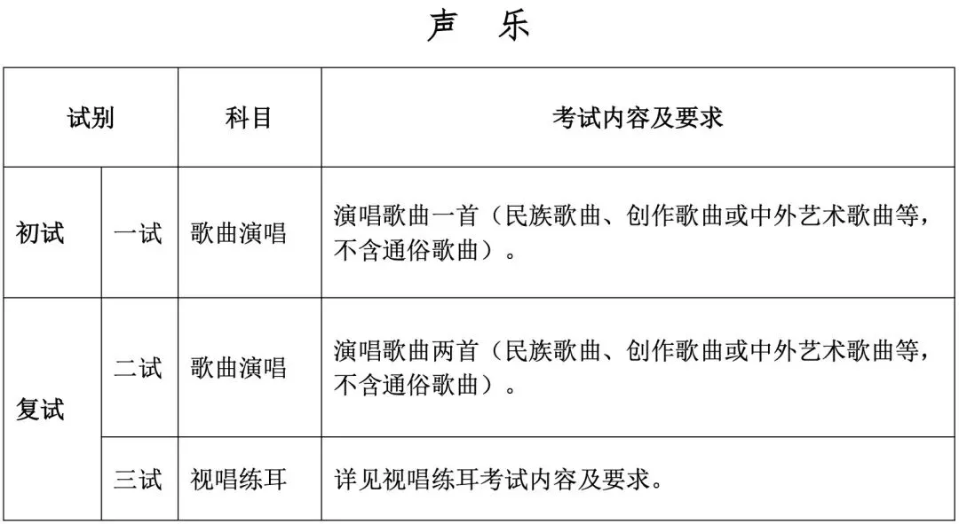 3.音乐表演专业、音乐学专业、音乐教育专业(含主科、副科)的二试均不可重复初试曲目。