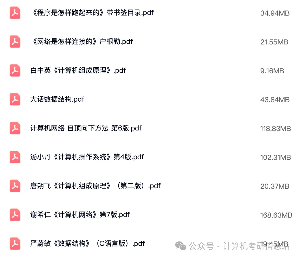 除了这些书外,还有一些补充的、更基础的、入门的书,数据结构的《大话数据结构》、操作系统的《程序是怎样跑起来的》、计算机网络的《网络是怎样连接的》,帮助大家入门更易、理解更深,加油。获取方式: