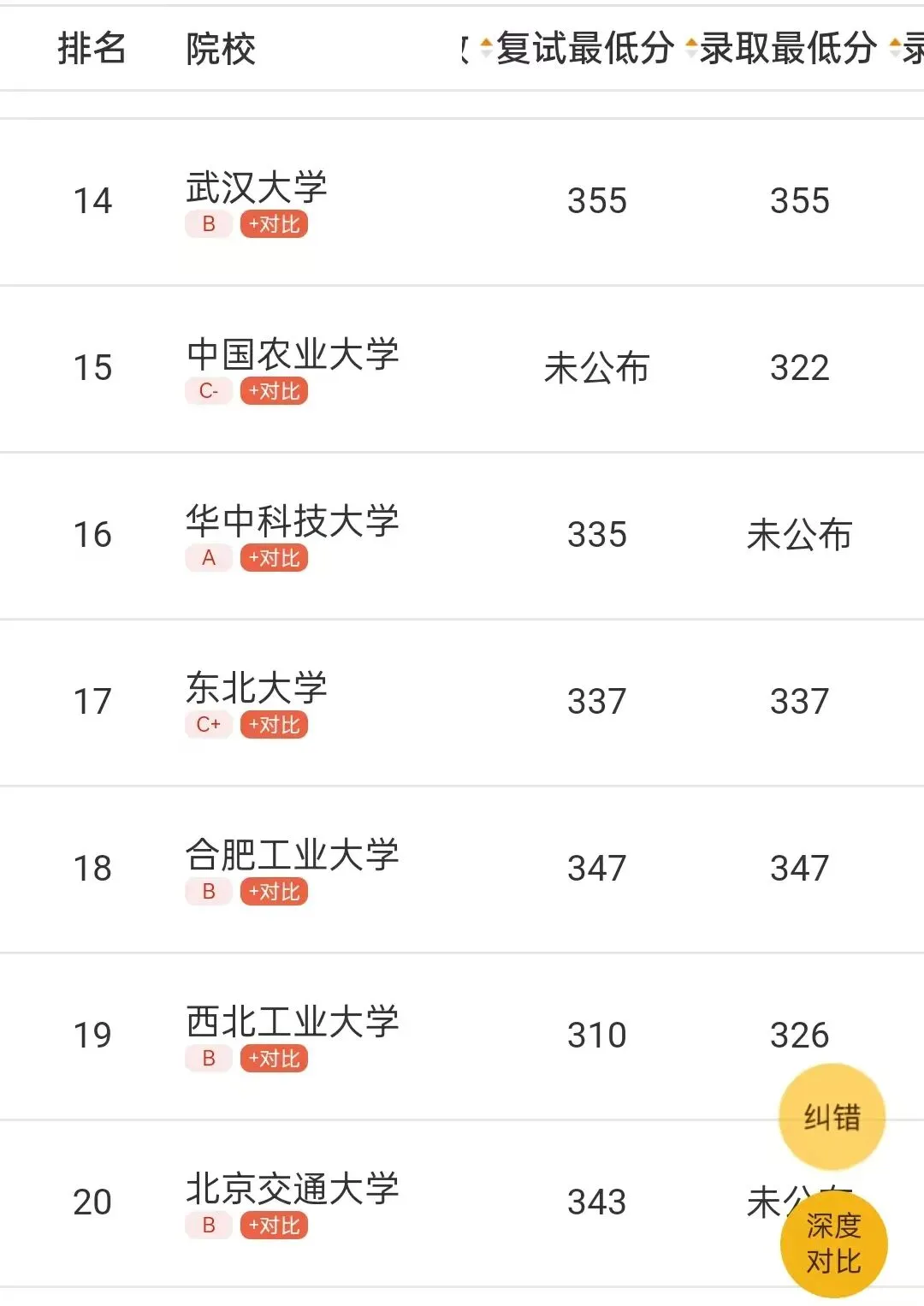 1.录取考生的初试平均分,占比权重50%。录取考生初试平均分越高,难度越大。如果录取平均分相差20分,一般总分会相差10分。2.院校水平,985.211.双一流这些都会影响,权重10%。比如一个顶尖的985学校和双非学校相差就是10分。3.学科实力,这个学校的学科评估、重点学科评定情况等方面都将影响,权重20%。4.所在城市,主要根据城市发达程度、是一线or二线城市、是考研A区orB区等等来判定,城市因素也往往影响水旱区,权重5%。5.其他参考指标,比如学校是否保护一志愿、复试刷人是否多,复试是否公平等等,权重15%。完整的难度指数计算规则在公众号后台回复【规则】即可查看。1.本排名是根据24年官方公布的复试名单、录取名单等信息计算得出,作为24年考试难度参考,不完全代表学校真实实力,不对25考研难度进行预测。2.部分学校复试名单、录取名单均没有公布考生的初试成绩,因缺少重要数据来源,不纳入排名噢~