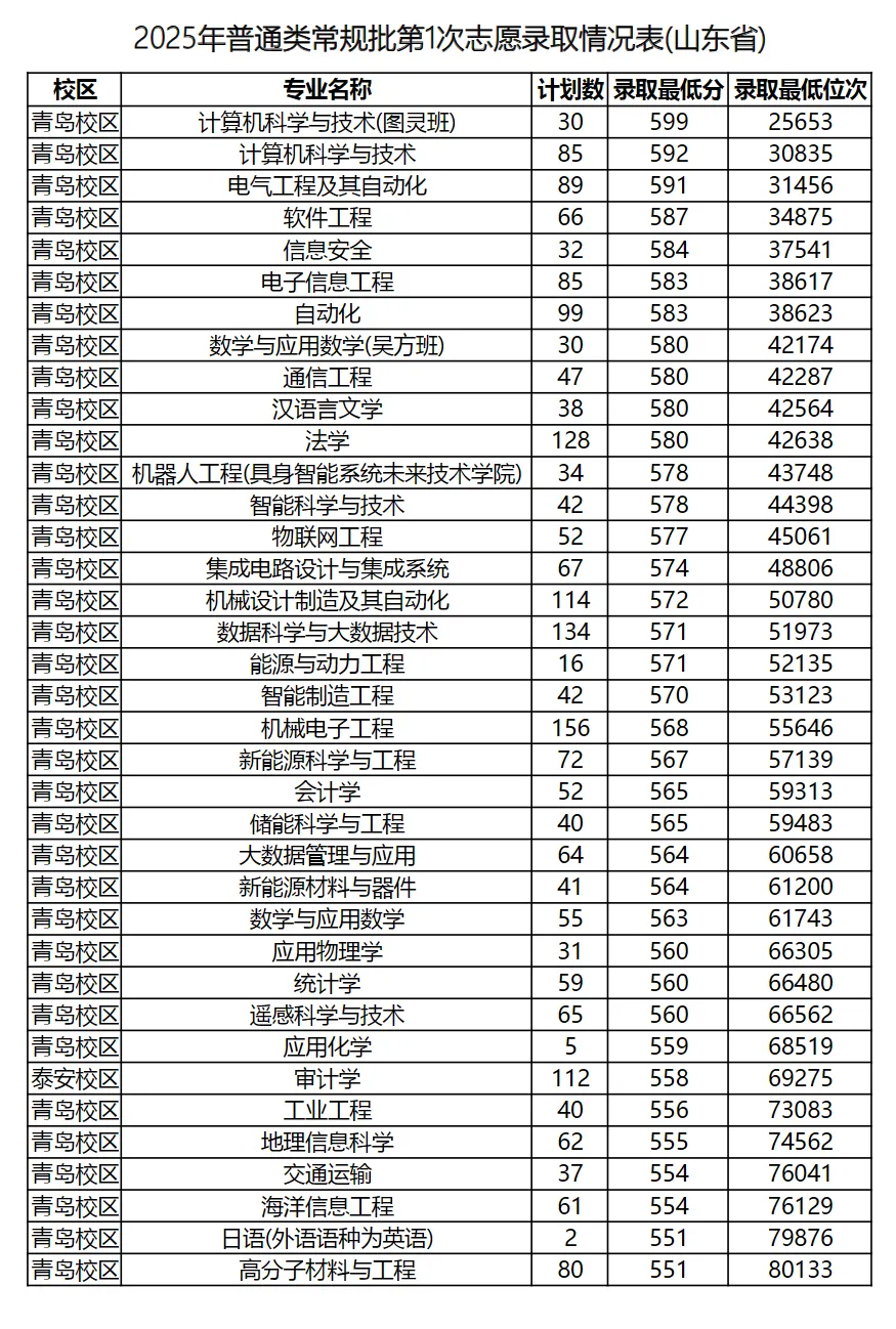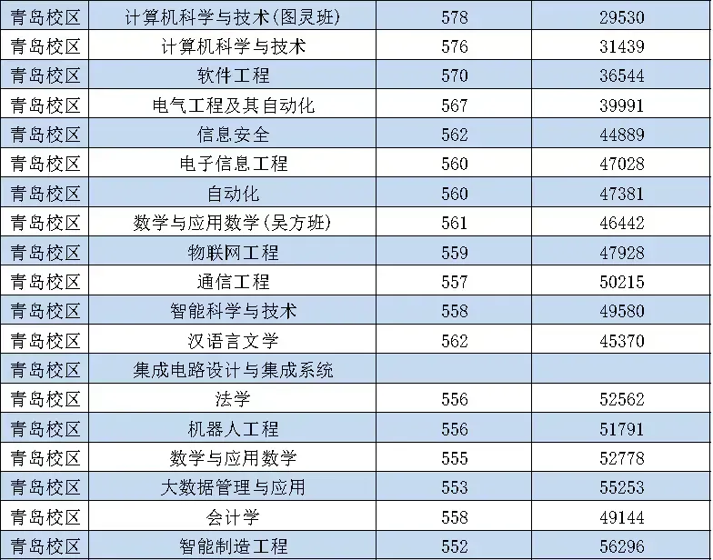 一是热门专业录取分数继续走高。青岛校区普通类录取最低分在551分(超过特殊类型招生控制线30分)以上的专业达35个。作为省内最早开设计算机科学与技术本科专业的高校之一,今年计算机科学与技术(图灵班)录取最低位次2.5万名,继续位居省属高校首位。计算机科学与技术、电气工程及其自动化、软件工程等46个专业录取最低位次均居省属高校首位。