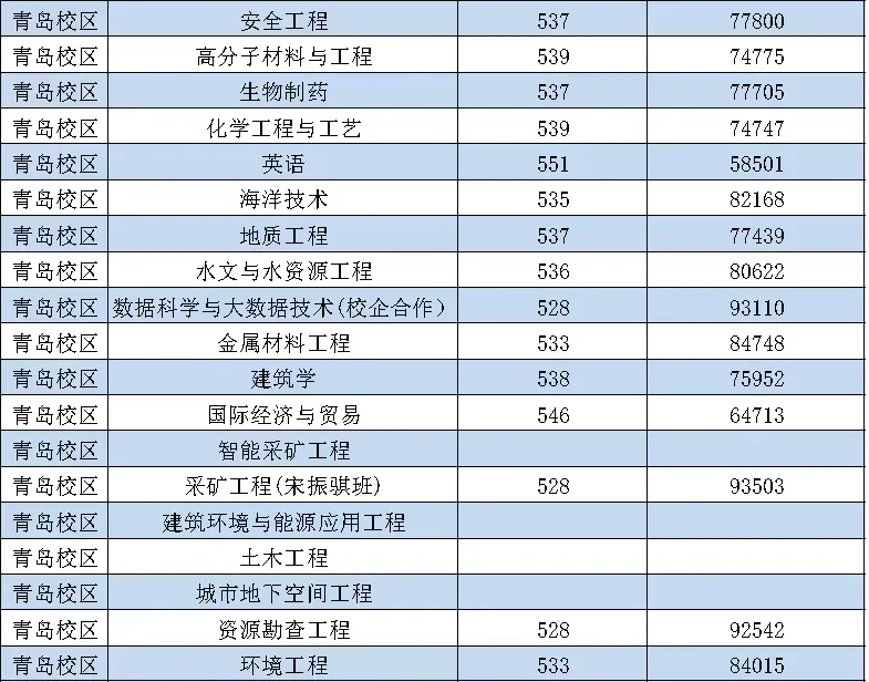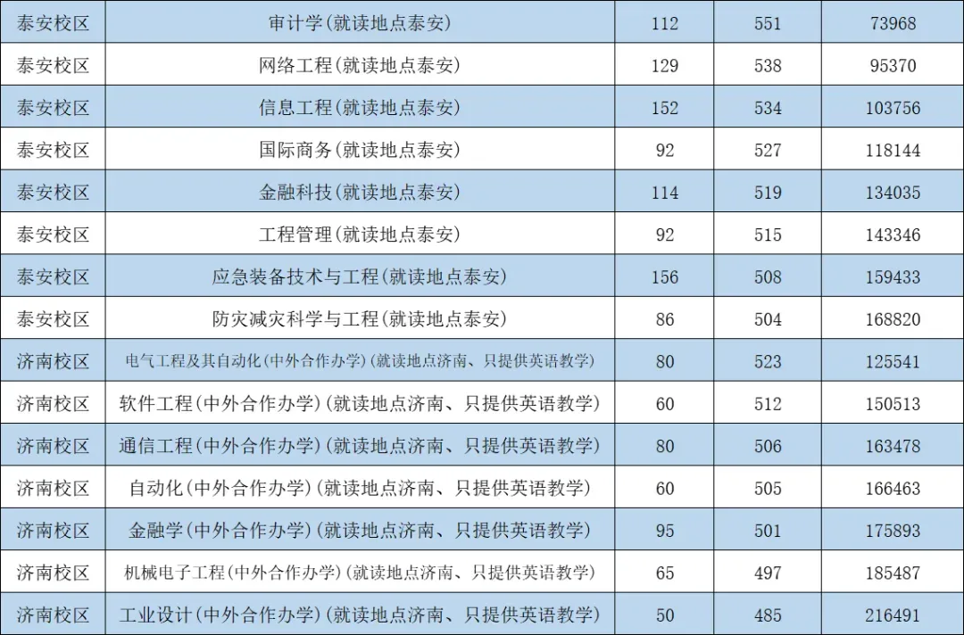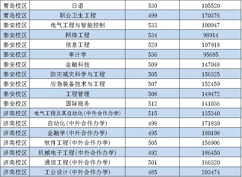 山东科技大学历年录取分: