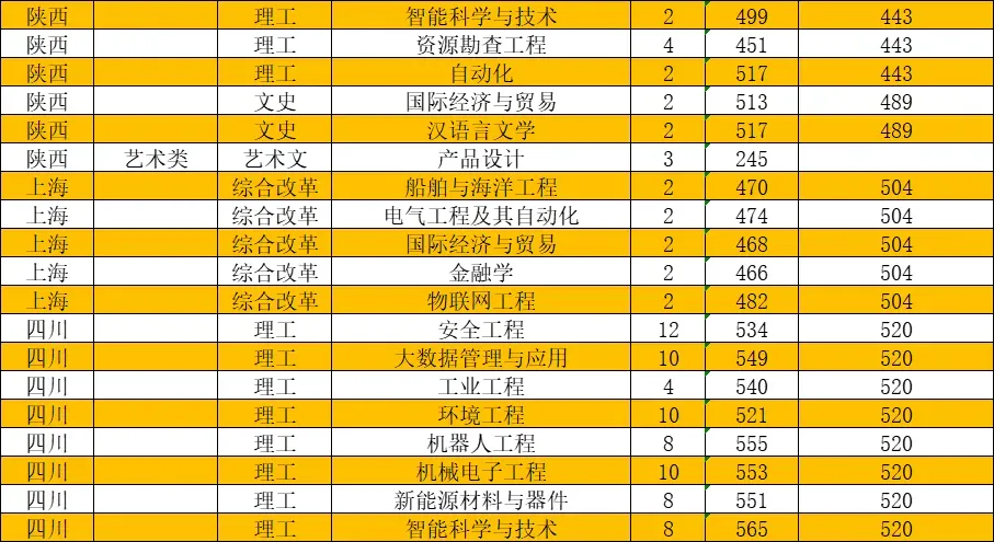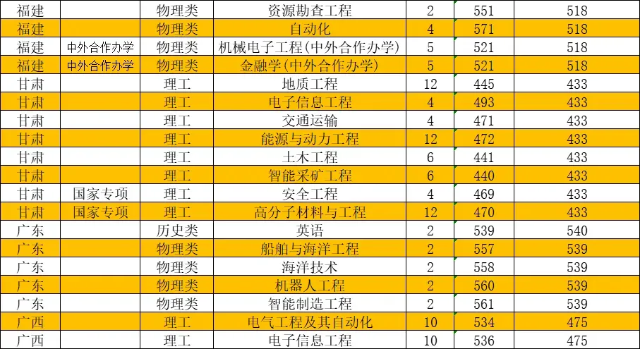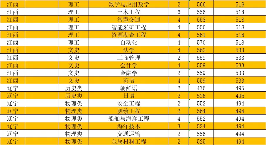 左右滑动查看对应专业录取分数