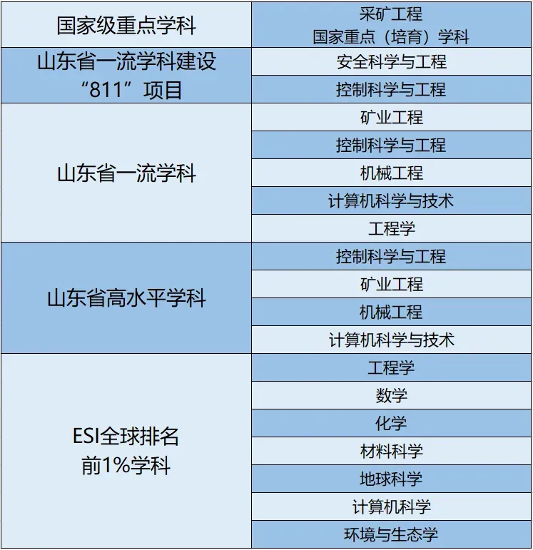 有国家重点(培育)学科1个,山东省一流学科建设“811”项目潜力学科2个,山东省高水平学科4个,山东省一流学科5个,另有省市级重点学科21个,7个学科进入ESI全球排名前1%,2个学科进入ESI全球排名前1‰。