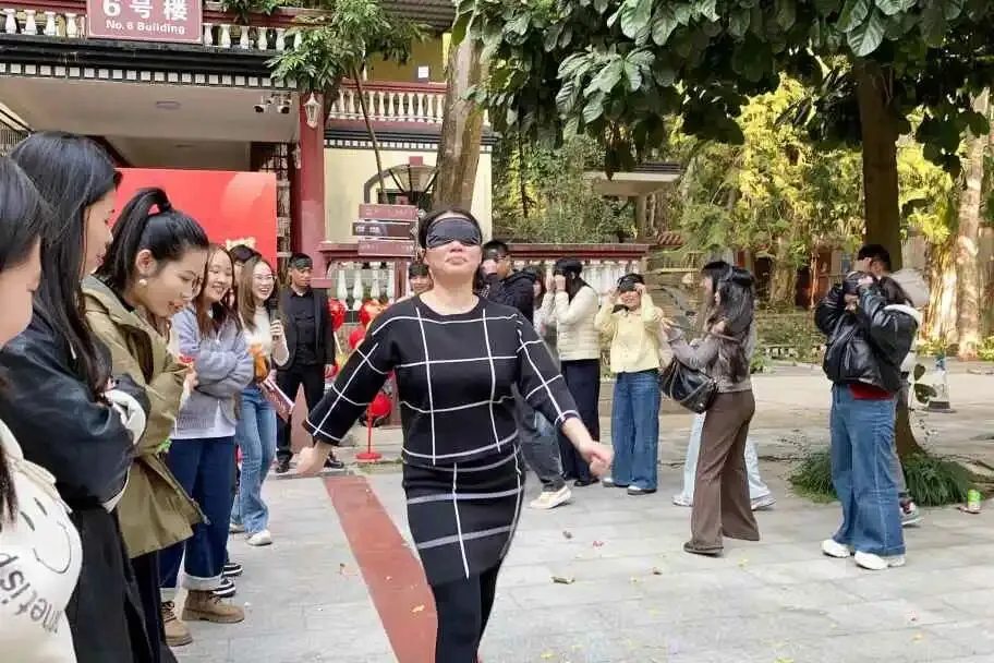 “蒙眼走猫步” 的搞怪姿态,让会场笑成一片,紧绷的神经彻底放松。
