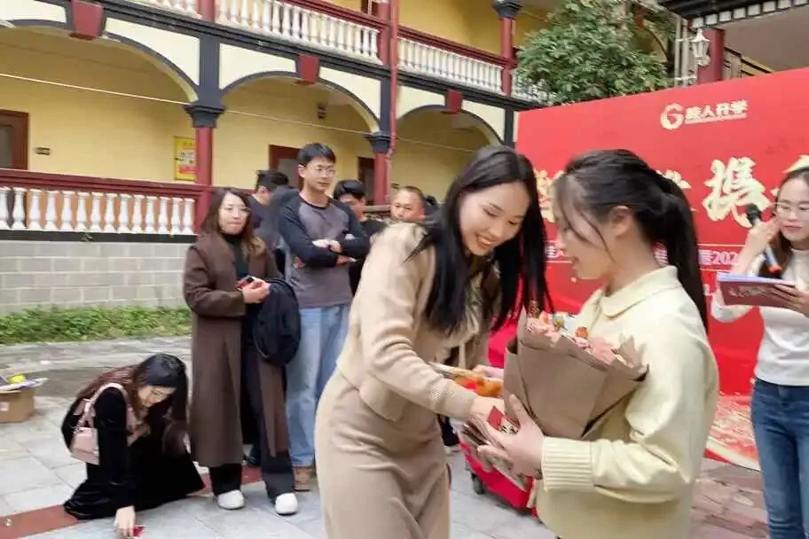 “ 2句话猜寿星名字” 的互动里,熟悉的 “暗号” 让寿星们接连 “暴露”;当蛋糕推上台,鲜花与小礼物一起分享,甜香里裹满了桂人的温暖。