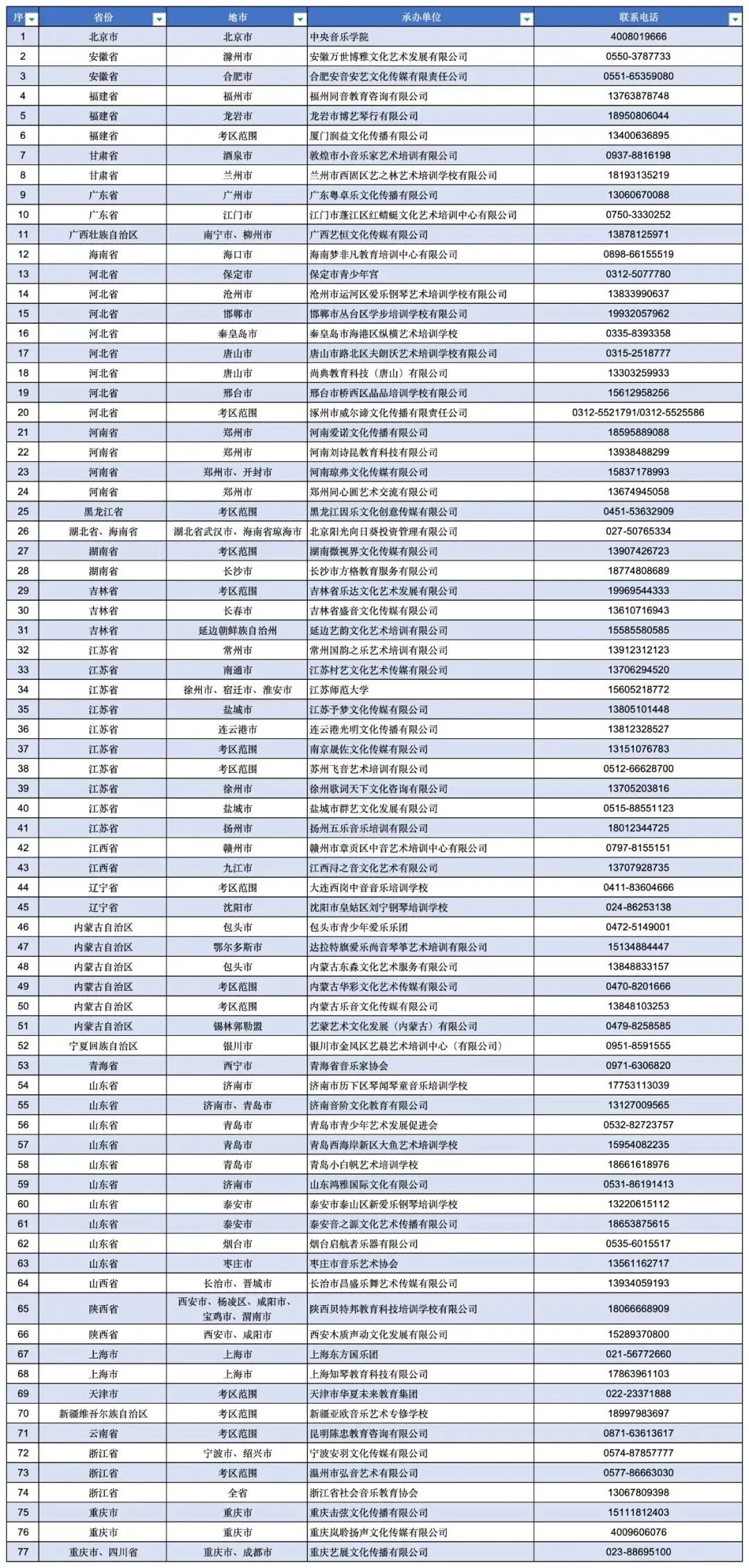 附2:2026年冬季(寒假)音基考试(线上)暑假音基考试各考点联系方式