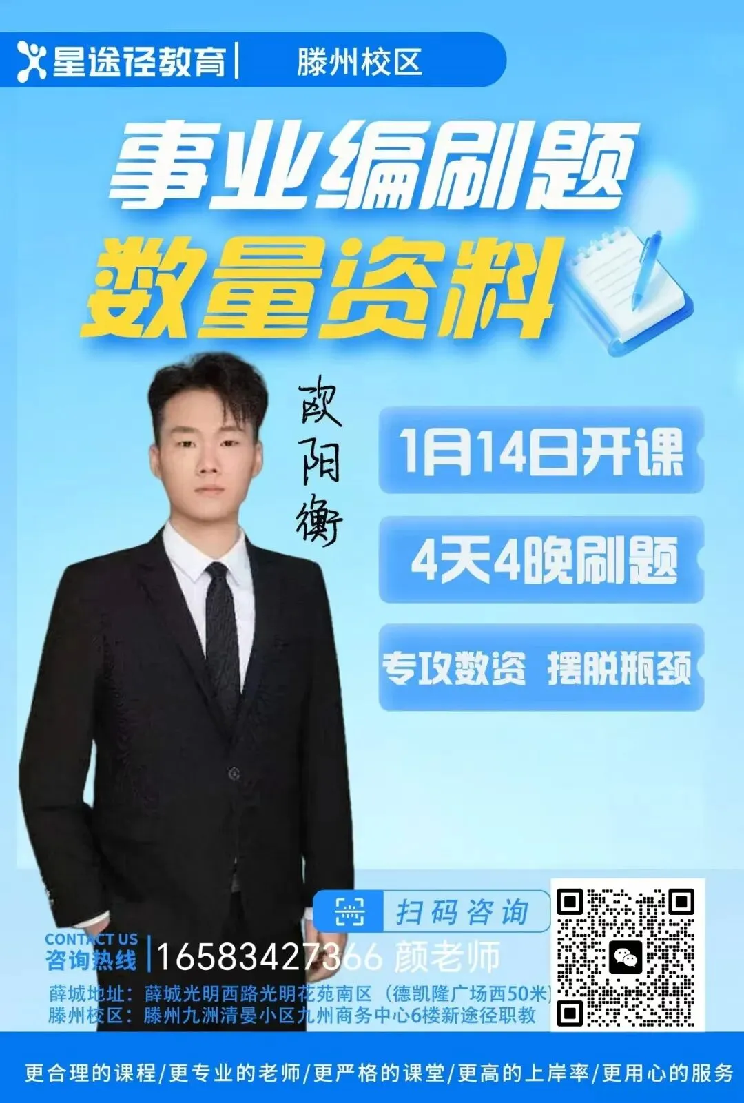 滕州校区:滕州市九州商务中心6楼(滕州市人民医院对过)17353873556薛城校区:薛城区光明西路1019号光明花苑一期5号楼4号营业房 16583247366