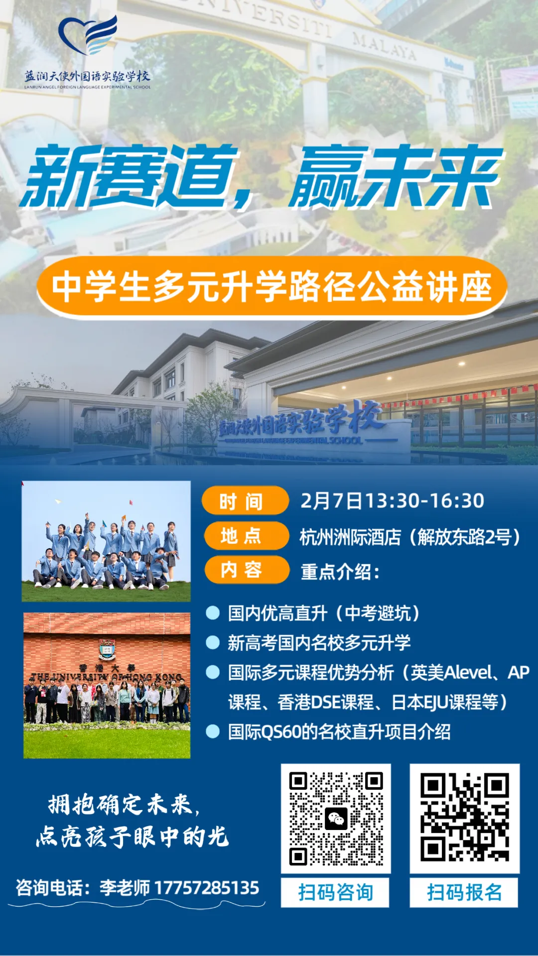 我们是浙江首家独立组织赴港实考的学校,已有毕业生成功录入港大、港科大。2026届42名考生已全部通过身份核验,目前已有四位同学收到了香港大学的面试邀请。