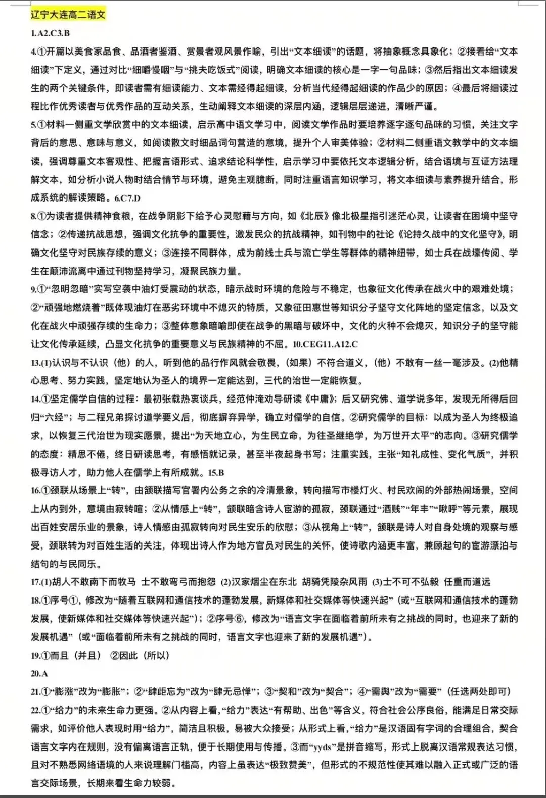 大连高一高二期末考试,大连市2025-2026学年第一学期高一高二期末语文试卷答案总结