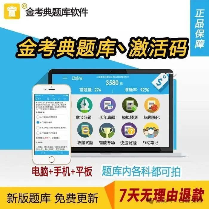 金考典含多个考试题库,根据大纲定期更新习题,软件模拟预测,大部分题目有详细解析,众多考生笔记分享,执考路漫漫,且行且珍惜。在这里,你不是一个人在战斗。