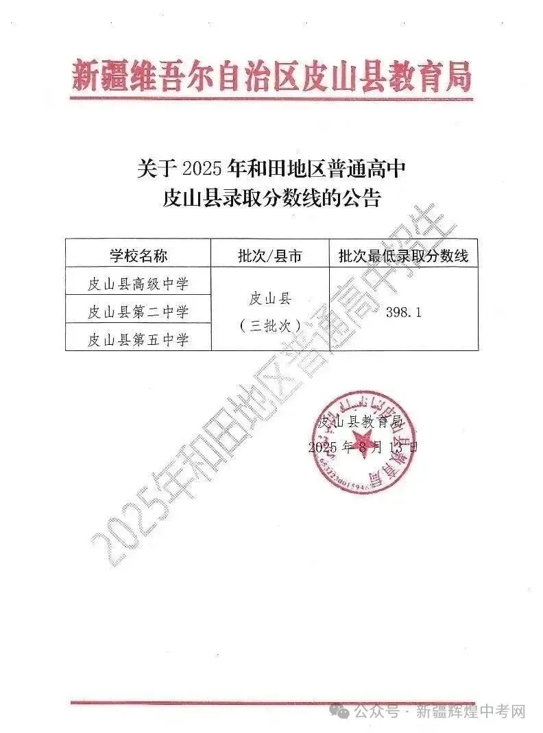 根据《2025年八师石河子市高中阶段学校招生工作实施方案》(石教发〔2025〕28号)文件精神,坚持全面衡量、综合评价、尊重志愿、择优录取原则,现将八师石河子市普通高中录取分数线公布如下:
