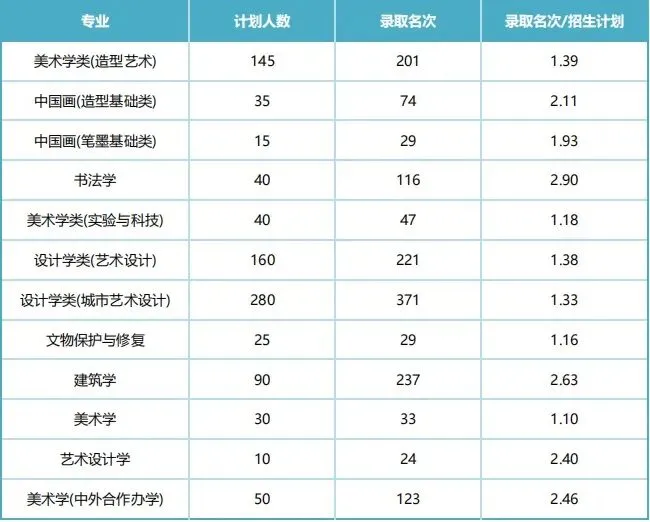 4.美术学类(实验与科技):专业成绩录取至143.5分第47名。