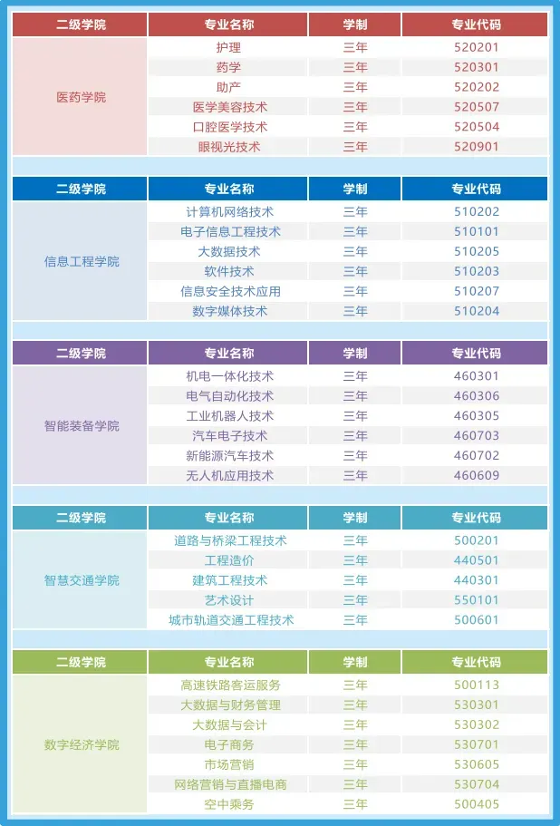 我校按照教育部及各省(区、市)招生主管部门的文件精神实施招生计划和招生专业的管理。2026年面向全国10个省(区、市)招生,详细计划以各省(区、市)招生主管部门公布的招生计划为准。所有专业均不限招生科类,即物理类、历史类、职高对口类考生均可报考。