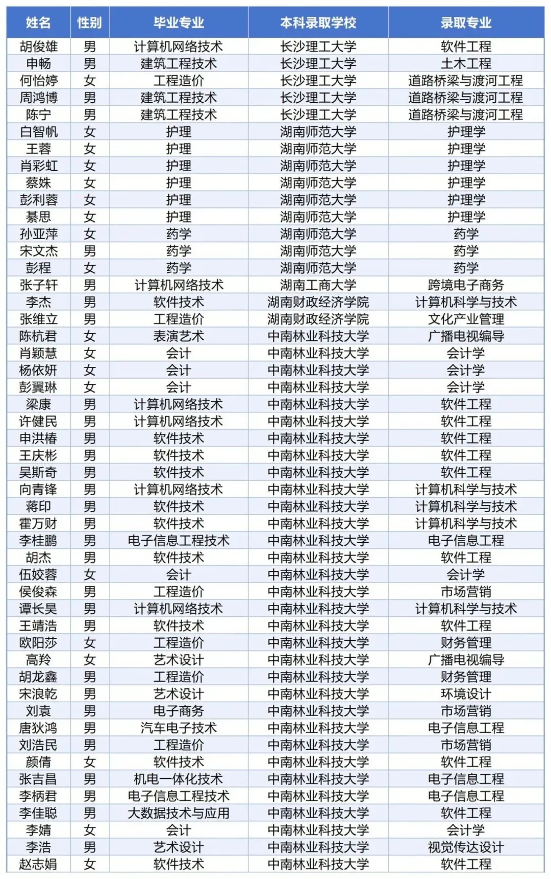 低分也能成功逆袭公办本科!长沙理工大学、湖南师范大学、湖南工商大学中南林业科技大学、湖南财政经济学院、湖南中医药大学……..众多名校大门,向拼搏的电科学子敞开!