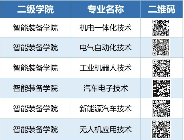 现开设有机电一体化技术、工业机器人技术、电气自动化技术、汽车电子技术、新能源汽车技术、无人机应用技术六个专业,致力于培养全面发展,能够解决智能制造领域复杂问题的高素质技术技能人才。